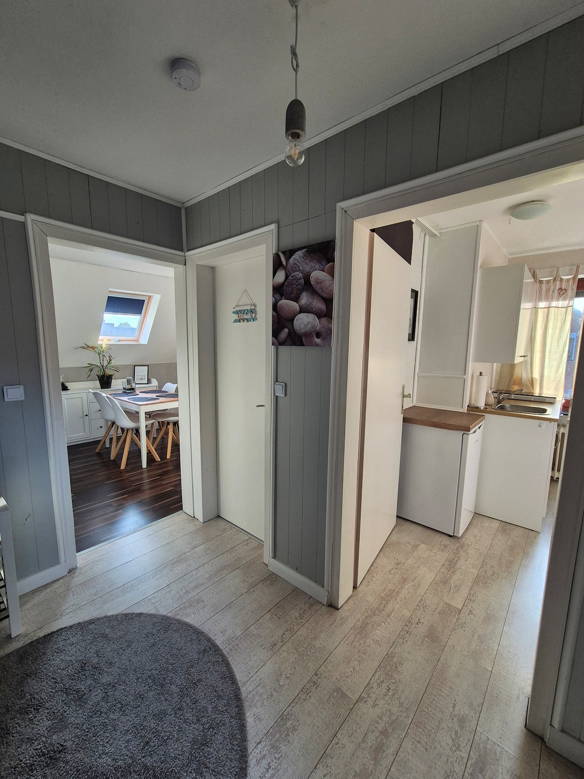 ¡Vacaciones - apagado el día a día! Apartamento recién reformado en el dique con vistas a los campos y prados. Decorado con piezas únicas y cosas que dan alegría. Terraza orientada hacia el cielo resplandeciente de la tarde, por lo que no hay TV. Un baño estupendo y PiPaPo... ver fotos. Escuche el grito de las gaviotas, el balido de las ovejas y deje que el viento sople por su nariz. Cada apartamento tiene su propio jardín natural. Lugar ideal para unas relajantes vacaciones en pareja para escapar del ajetreo de la ciudad.