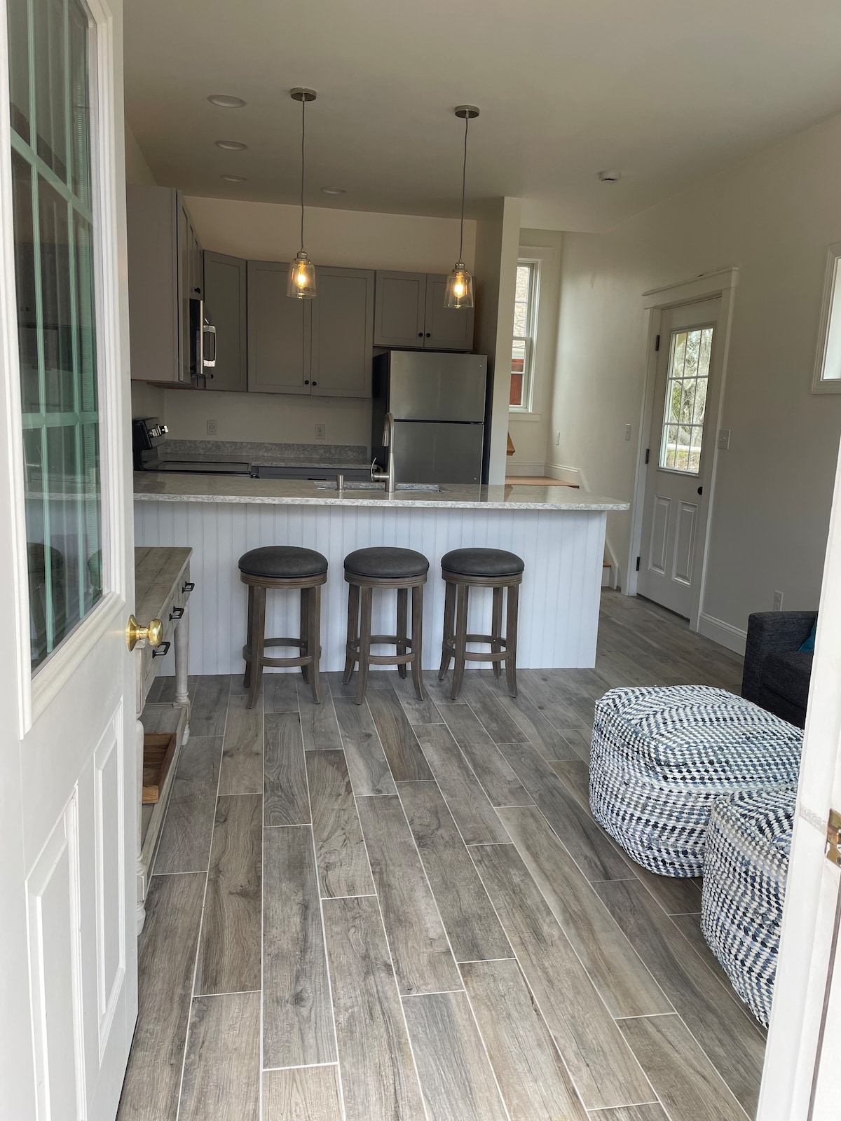 Hermosa casa de huéspedes privada en Chilmark en Martha's Vineyard. Aislada pero práctica. ¡Conduce hasta las espectaculares playas de Chilmark! Recién reformado y precioso. Excelente ubicación: a 10 minutos a pie de la tienda Chilmark. Cocina completa, sala de estar, isla de cocina/mesa de comedor, cama tamaño queen, sofá cama (no para dormir), chimenea/calefacción, ducha privada al aire libre, terraza y mesa de picnic, baño completo en el interior. Máquina Keurig. 2 labradores amistosos/2 gallinas en las instalaciones. Fácil acceso en autobús. Encanto de MV de estilo antiguo.