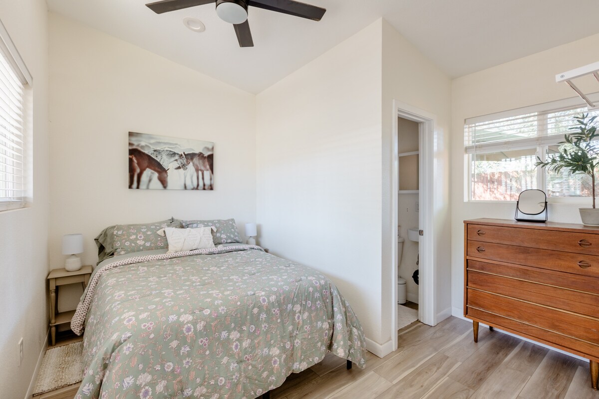 Incluye una zona de trabajo/comedor, una cómoda cama tamaño queen y un cubre colchón de espuma viscoelástica (añadido recientemente), un baño completo, una pequeña cocina, suelos de vinilo y amplia iluminación. Incluye una entrada privada desde el lateral de la propiedad con aparcamiento en la calle. A solo 8 minutos a pie de más de 20 restaurantes y un montón de tiendas, incluido el mercado de Baron. A solo dos manzanas de la estación de Santa Venita, que te lleva directamente al centro de San Diego.