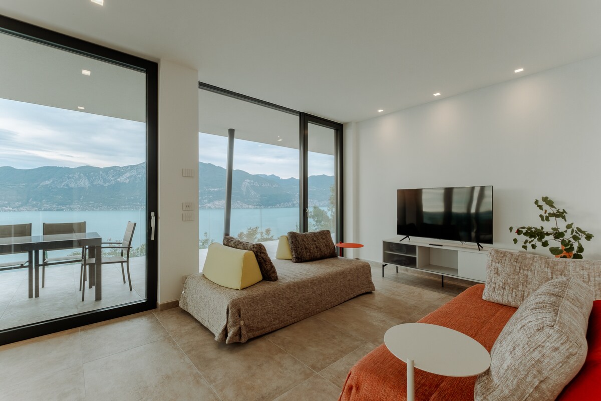 Elegante apartamento con vistas al lago, con jardín privado y piscina rodeada de parque residencial verde de olivos. Situado a los pies del monte Baldo, a pocos minutos del centro de Malcesine, las playas del lago de Garda y el teleférico. El apartamento se encuentra en una posición tranquila y relajante en medio de la naturaleza, para aquellos que aman caminar y los deportes al aire libre. Gracias a la proximidad al lago, es posible practicar muchos deportes acuáticos y relajarse en las típicas playas de Garda.