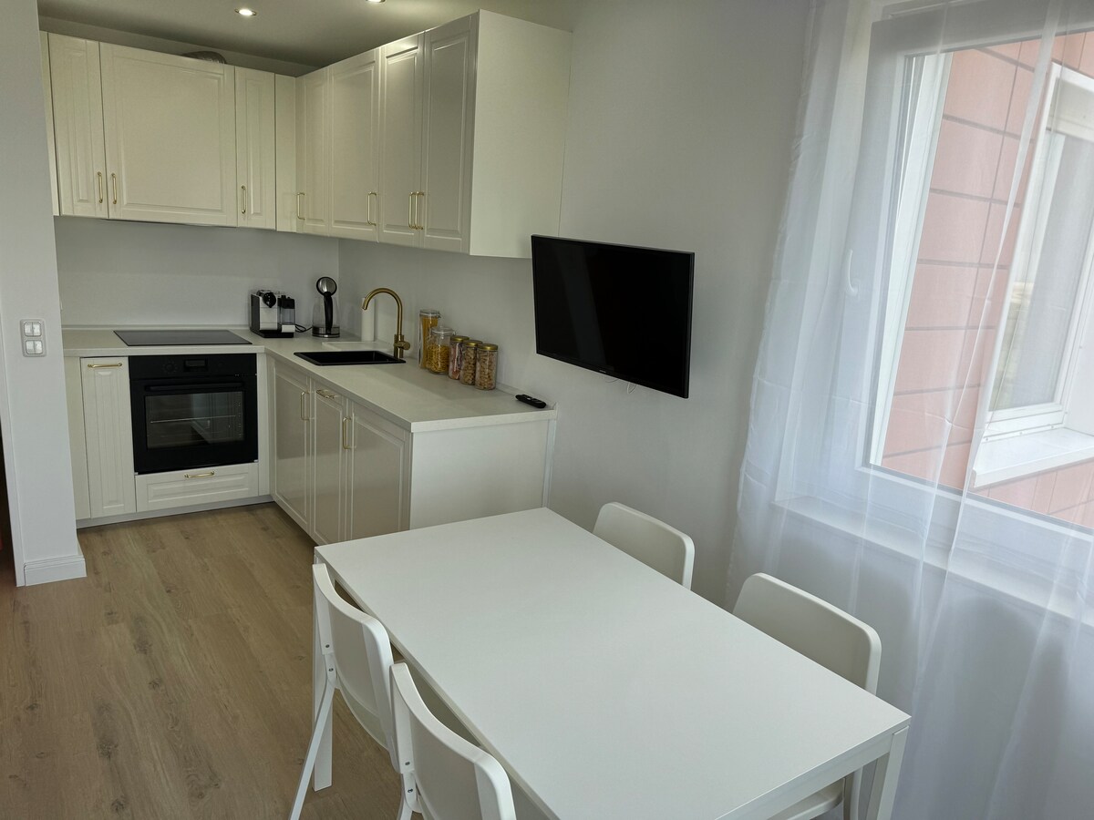 - Apartamento para no fumadores de 46 metros cuadrados en el cuarto piso del parque residencial "Atlantic" - Amplio balcón con fantásticas vistas - Espacio de estacionamiento propio disponible - Instalaciones para dormir en una alcoba separada con puerta corredera y dormitorio separado - Nueva cocina abierta con mostrador, baño modernizado y aseo - Canchas de tenis y sala de tenis de mesa disponibles - Proximidad directa al centro y muelle - Restaurantes, cine, piscina, mini campo de golf, milla de compras, alquiler de bicicletas, etc. Ofertas a poca distancia