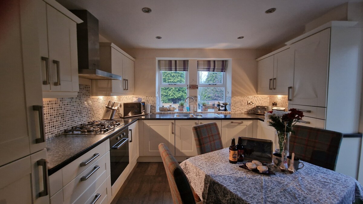 Un apartamento espacioso, independiente y autónomo de un dormitorio, acceso a través de escalones con pasamanos. Se encuentra a solo 5 minutos a pie de la estación de tren del pueblo con acceso a Manchester, Leeds y directo a Sheffield. Cuenta con salón, comedor, cocina y áreas de estudio de planta abierta con baño de ducha independiente y aparcamiento dentro de una entrada privada cerrada. No se puede hacer uso del jardín principal, pero tiene ventanas francesas, balcón y una hermosa vista al jardín. Ideal para un descanso relajante. Cerca de Holmfirth, Yorkshire y Peak District.