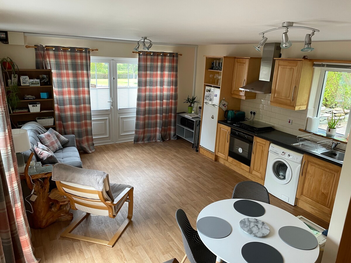 Self-contained accommodation with one bedroom and ensuite bathroom, living and dining areas plus a full kitchen. Networked wifi, including outdoors. A secluded outdoor seating area. Free parking and two bicycles included on-site. Travel cot and high chair available upon request. Directly across N72, guests can access Fossa Way – a walking / cycling trail - to Killarney town center (approximately 4 km or 2.5 miles) and have direct access Killarney National Park.