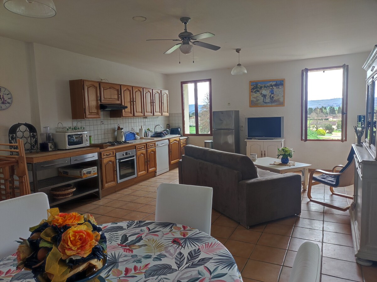 T1 bis idealmente situado en las alturas del pueblo y totalmente equipado (ropa de cama incluida)para una estancia inolvidable en el valle del Lot. Para amenizar sus vacaciones de verano podrá disfrutar de nuestra piscina. También hay una mesa de ping-pong y un lavadero contiguo a su disposición donde podrá guardar sus bicicletas sin miedo