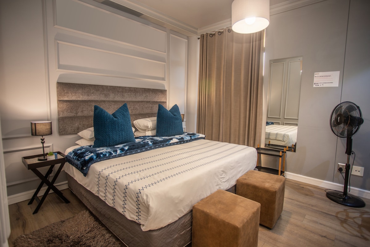 Recién reformado con todas las comodidades de un hogar, relájate con un café expreso en nuestro apartamento bellamente decorado con vistas al puerto y los barcos de Durban. Estás a poca distancia a pie de la nueva terminal de pasajeros, múltiples restaurantes y bares, así como del Ushaka Marine World y del paseo marítimo. La cocina del apartamento está equipada con nevera/congelador, lavadora, microondas, hervidor de agua, tostadora y cafetera. Hay un horno empotrado y una placa eléctrica y se suministran todos los productos básicos para los huéspedes. (Café recién molido, té, galletas caseras, leche y azúcar). El apartamento también está equipado con todos los utensilios, ollas, sartenes, vajilla, cubiertos, vasos y artículos adicionales (platos para servir, ensaladeras, cubo de champán, etc.). La habitación principal tiene una cama tamaño queen (2 personas) y hay un sofá cama individual (1 persona) con ropa de cama (SNooZA) en el salón (se puede alojar un máximo de 3 personas). El SNooZA se pliega en una otomana ordenada cuando no lo necesitas. El apartamento incluye un balcón privado para los huéspedes. IMPORTANTE: El apartamento es autosuficiente y tiene todo lo necesario. Si necesitas algo específico, envíanos una consulta. Ten en cuenta que el apartamento no se limpia a diario. El cargo por servicio es para la limpieza y el mantenimiento del apartamento después de la salida. Si necesitas servicio de limpieza, hay un servicio de limpieza adicional disponible para limpiar, lavar y/o planchar que puedes solicitar según sea necesario. Este es un costo adicional. Los horarios de llegada y salida son una guía y son flexibles siempre que el apartamento esté atendido y listo y pueda estar disponible. El apartamento se encuentra en Durban Point Waterfront, un recinto gestionado que se está convirtiendo rápidamente en una zona de moda y codiciada. Está cerca de restaurantes, una nueva y moderna cervecería, cafeterías y bares, y está a pocos pasos de la playa, la nueva terminal de cruceros, el paseo marítimo de Durban y el mundo marino de Ushaka. Hay un aparcamiento subterráneo seguro y cubierto asignado para el apartamento. Si no tienes coche, puedes utilizar Uber, pero también hay un servicio de autobús regular y fiable disponible todos los días en el punto de recogida de Signal Road (ver mapa). También se proporciona lo siguiente para tu comodidad: - Una caja fuerte digital. - Cesta de pícnic. - Toallas de playa y manta de picnic en la playa (también hay sombrillas de playa disponibles a petición). Todas las ventanas están equipadas con protecciones de seguridad y el edificio cuenta con seguridad las 24 horas y cámaras de seguridad para tu seguridad. Si necesitas cualquier solicitud adicional, tienes una ocasión especial o necesitas alguna provisión, no dudes en ponerte en contacto con nosotros. Haremos todo lo que esté en nuestras manos para alojarte en el momento del registro. Importante: Por respeto a los vecinos, no se permite música alta, fiestas/eventos ni barbacoas de carbón. Una copia de las normas de la comunidad de propietarios está disponible en el archivo del huésped.