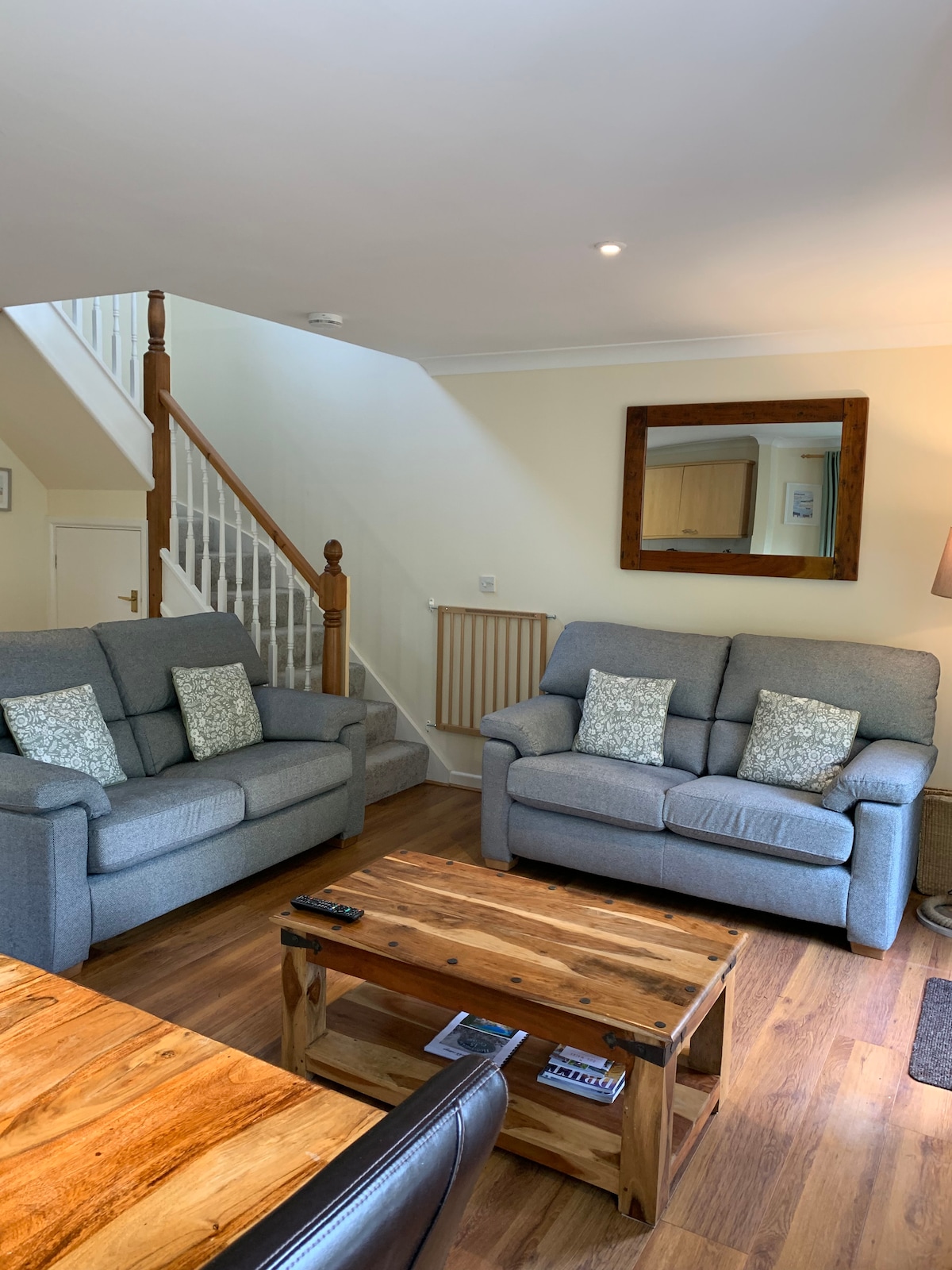 Acogedor estudio de lujo para dos personas en las afueras del pueblo con patio privado soleado, jardín con césped, cama tamaño king de espuma viscoelástica, baño privado con ducha eléctrica a ras de suelo y cocina completa con horno de ventilador, vitrocerámica de 4 fuegos, extractor, microondas y lavadora/secadora. Wifi gratuito y TV inteligente Freesat con reproductor de DVD. Chimenea eléctrica de leña. Sofá. A menos de 10 minutos a pie por la colina hasta el paseo marítimo y el pueblo con playa e instalaciones. Paz, tranquilidad y privacidad. Aparcamiento privado y espacio para girar.