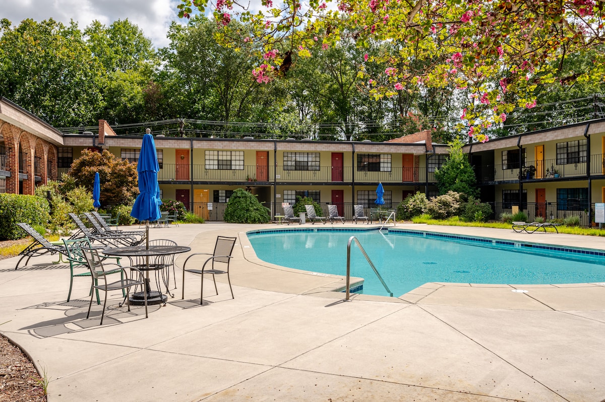 Explora lo mejor de Durham en este condominio del primer piso a pocos pasos de restaurantes y bares locales en el distrito de almacenes, American Tobacco Campus y Duke East Campus. Relájate en el hermoso patio donde puedes tomar café, refrescarte en la piscina o tomar una siesta por la tarde en una hamaca. Este apartamento está totalmente equipado para tu comodidad. La propiedad está cerrada. ESTACIONAMIENTO GRATUITO. Llegada anticipada y salida después de la hora establecida disponibles por 25 $ adicionales. Envíame una consulta.