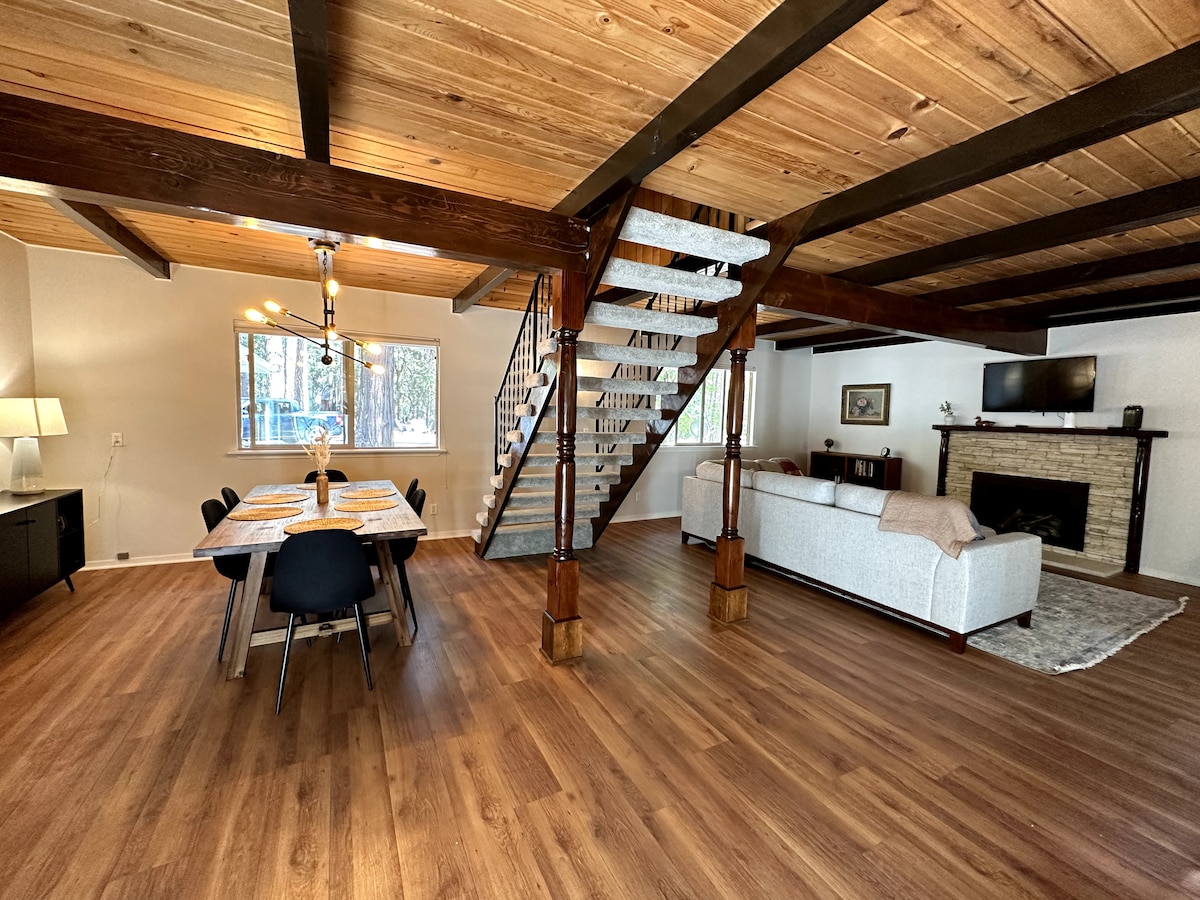 Olvídate de las preocupaciones en este gran alojamiento: ¡es un oasis de tranquilidad! Casa recientemente reformada de 1200 pies cuadrados con 2 dormitorios y 2 baños ubicada entre grandes pinos, cedros y robles. Situado en un barrio cerrado entre dos pintorescas ciudades de la fiebre del oro con tiendas, catas de vinos, rutas de senderismo y lugares de interés. Zonas de esquí de fácil acceso para excursiones de un día. Descansa o cena en la terraza con una copa de vino local y observa cómo los simpáticos ciervos pasan deambulando, a veces deteniéndose a saludar.