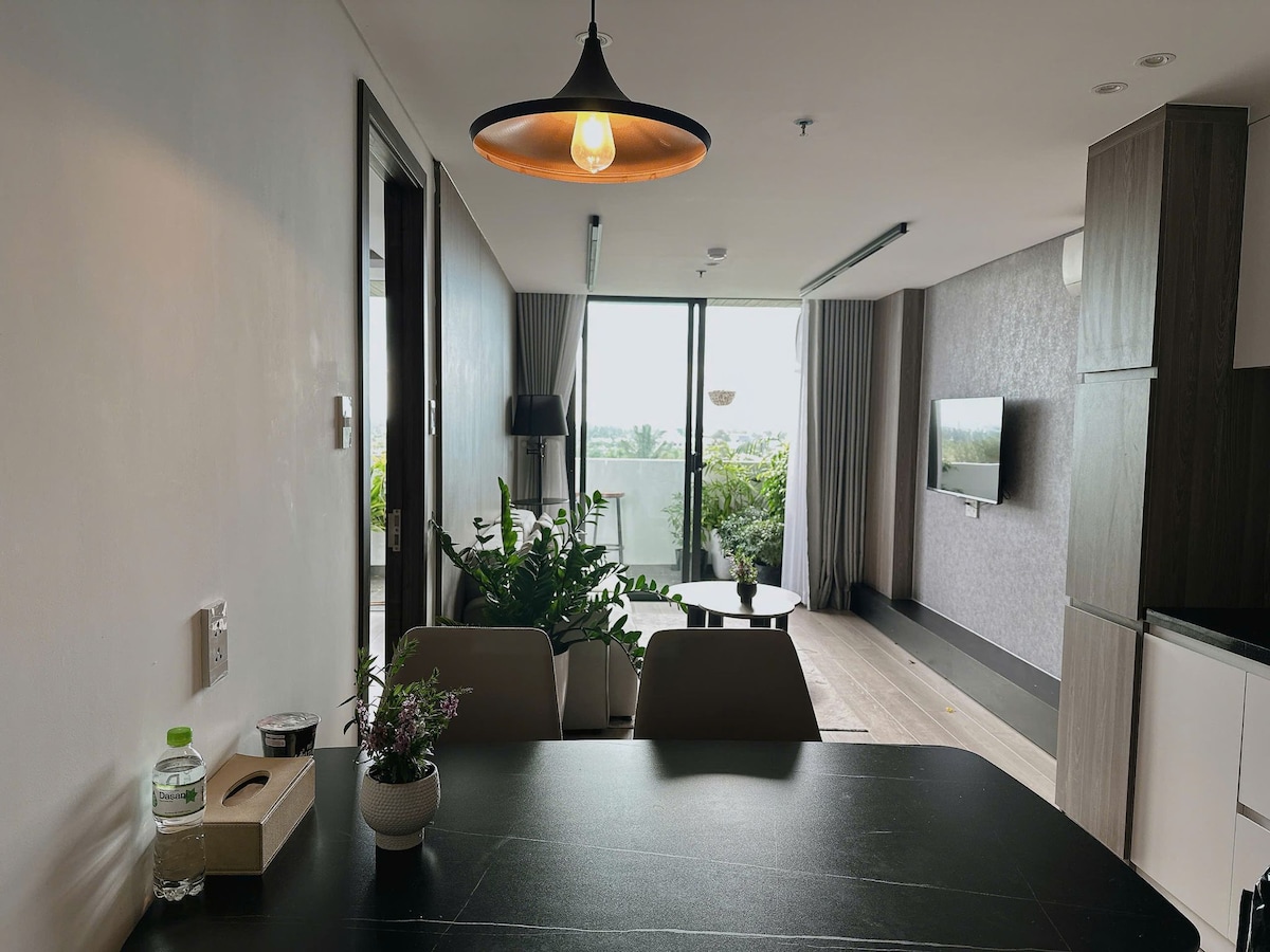 Descansar y relajarse en este espacio tranquilo y elegante sin duda ofrecer unas vacaciones maravillosas y bien merecidas. Apartamento de 1 habitación con muebles lujosos y exquisitos Servicio internacional estándar de 5 estrellas administrado por la famosa marca Wyndham Enorme sistema de piscina Hermosa playa privada, arena blanca, mar azul, fresco y limpio Sistema de restaurante para pedir o bufet Procedimientos de registro y salida rápidos y experiencia en el gimnasio grande,moderno y lujoso.