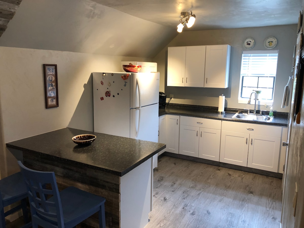 Sage Cottage se encuentra en el hermoso condado de Pottawatomie, en nuestro propio bosque de Oaklore. La casa tiene capacidad para dos personas en nuestra cama tamaño queen. Tiene una minicocina y un baño de 3 piezas con ducha. La cocina está equipada con un pequeño fregadero de barra, placa calefactora doble, tostadora, microondas, cafetera, kuerig, horno tostador, nevera pequeña y utensilios básicos de cocina. ¡Hay una mesa de bistró, una mesa de picnic, una parrilla y una mesa de desayuno en el interior! Wifi gratuito, jacuzzi abierto todo el año, albornoces, ver «otros aspectos destacables».