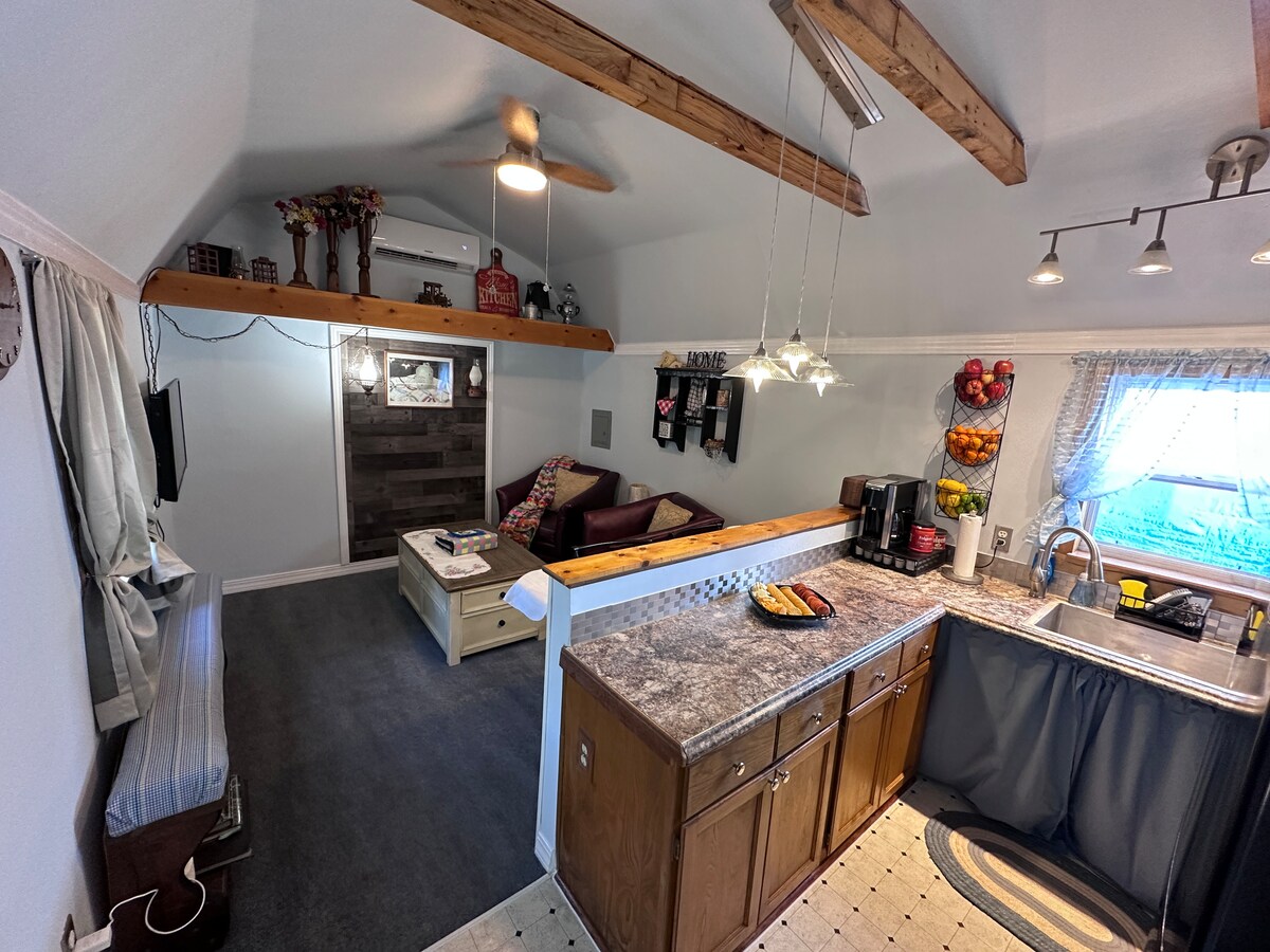 Disfruta de un entorno tranquilo en 5 acres con un estanque de pesca abastecido. 1 dormitorio(cama doble queen adicional)/1,5 baño con lavadora y secadora para estancias prolongadas. Cerca de campos de pelota locales si viajas con un equipo. Wifi de fibra óptica, televisores, cocina completa, cama tamaño king, totalmente amueblada y refugio de tornados recién agregado. Hay enchufes disponibles para conectar tu cargador para vehículos eléctricos. Esta propiedad nuestra está en constante mejora. ¡Estamos encantados de compartir un pedacito de nuestro cielo con otros! Se admiten mascotas con la tarifa aplicable.