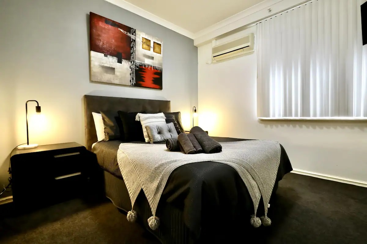 Un apartamento elegante y espacioso situado en un complejo seguro en Northbridge, el centro de entretenimiento y cultura de Perth, y justo al lado del barrio chino. Cómodo y tranquilo, ¡te sentirás como en casa! Cuenta con instalaciones modernas, totalmente surtidas y equipadas, perfectas para estancias cortas o largas, gimnasio comunitario, aire acondicionado y un amplio dormitorio principal con cama tamaño king. También tendrás tu propia lavandería con lavadora y secadora. Tiene un carbay en el aparcamiento del sótano, con un punto de alimentación de 240 V para la carga de vehículos eléctricos.