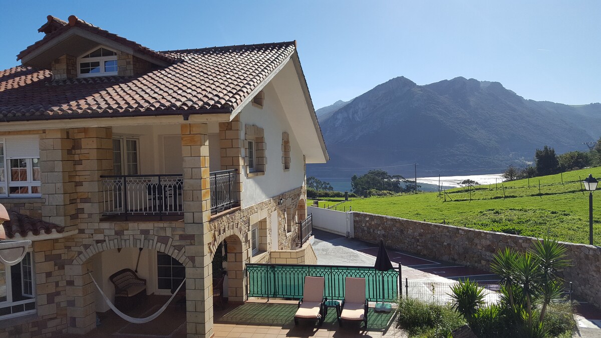 Apto. situado frente a la playa, con preciosas vistas al mar y a los ojos del diablo. Entrada Independiente, con acceso a pie en pocos minutos (12-15 min) a la playa de Sonabia, pequeña playa con una arena dorada de calidad y a algunas pequeñas y preciosas calas Situado en el bajo de un chalet Próximo también a la playa más familiar de Oriñon Espectaculares treking, saliendo desde el apto a los ojos del diablo y por la costa Perfecta base para visitar Cantabria y Vizcaya % off según estancia