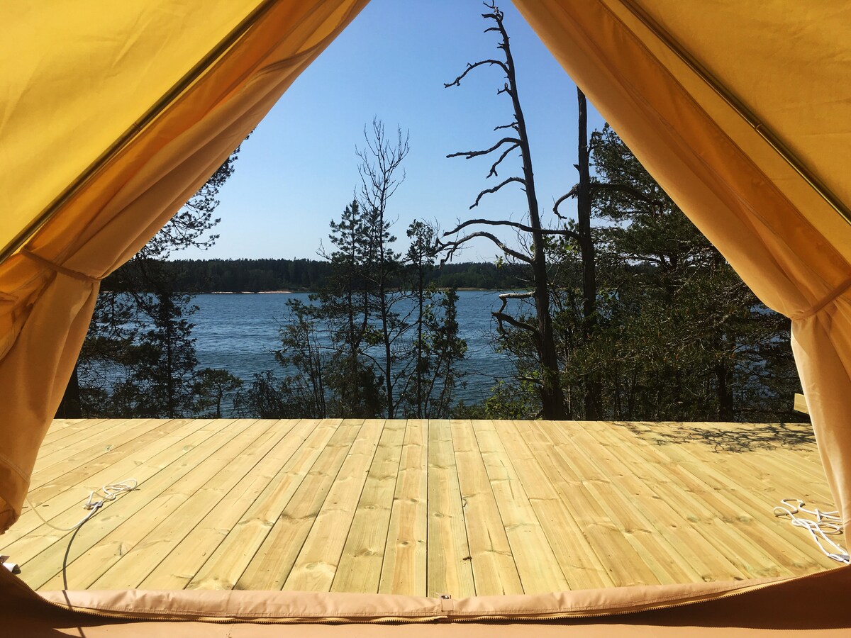 Bienvenido a nuestra tienda glamping en un entorno único y tranquilo en Stjärnholm, junto a Oxelösund, a solo 1,5 horas de Estocolmo. La tienda glamping se encuentra junto al mar debajo de una colina y tiene una puerta privada con un pequeño bote, dos tablas de paddle surf y una zona de barbacoa. En el cobertizo junto a la tienda glamping hay agua fresca y cerca de la tienda hay un retrete. También tienes una ducha al aire libre con agua dulce. La cama es de 120 cm de ancho y tiene sábanas satinadas.
