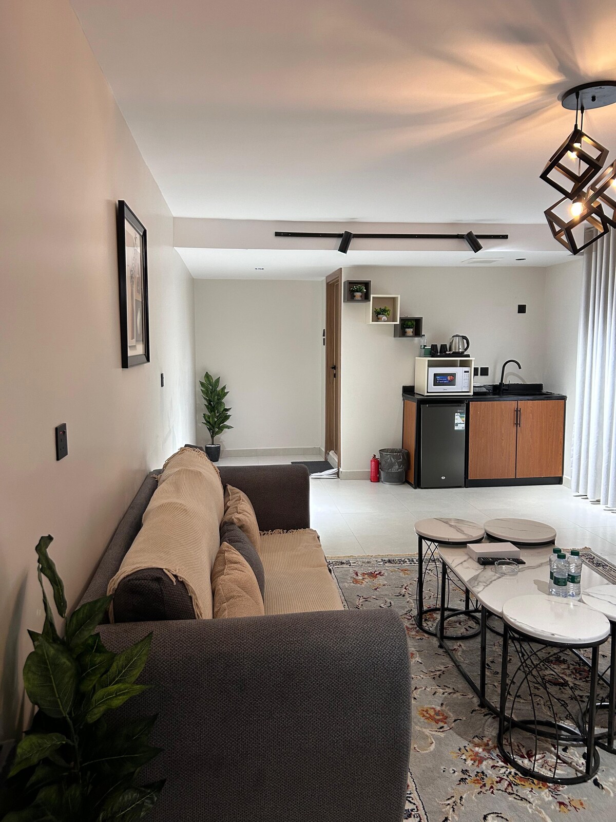 Un estudio tranquilo y elegante con check-in autónomo, que consta de una cama principal, un asiento lateral y un televisor inteligente, además de un rincón de café para hacer café y té, un hervidor de agua y un microondas, y un baño completo con herramientas de ducha. Este estudio está estratégicamente situado en el norte de Riad y está cerca de todos los servicios y eventos. No hay WiFi. Riyadh Boulevard está a 5 minutos Walnder Gunn a 8 minutos , El aeropuerto está a 18 minutos.