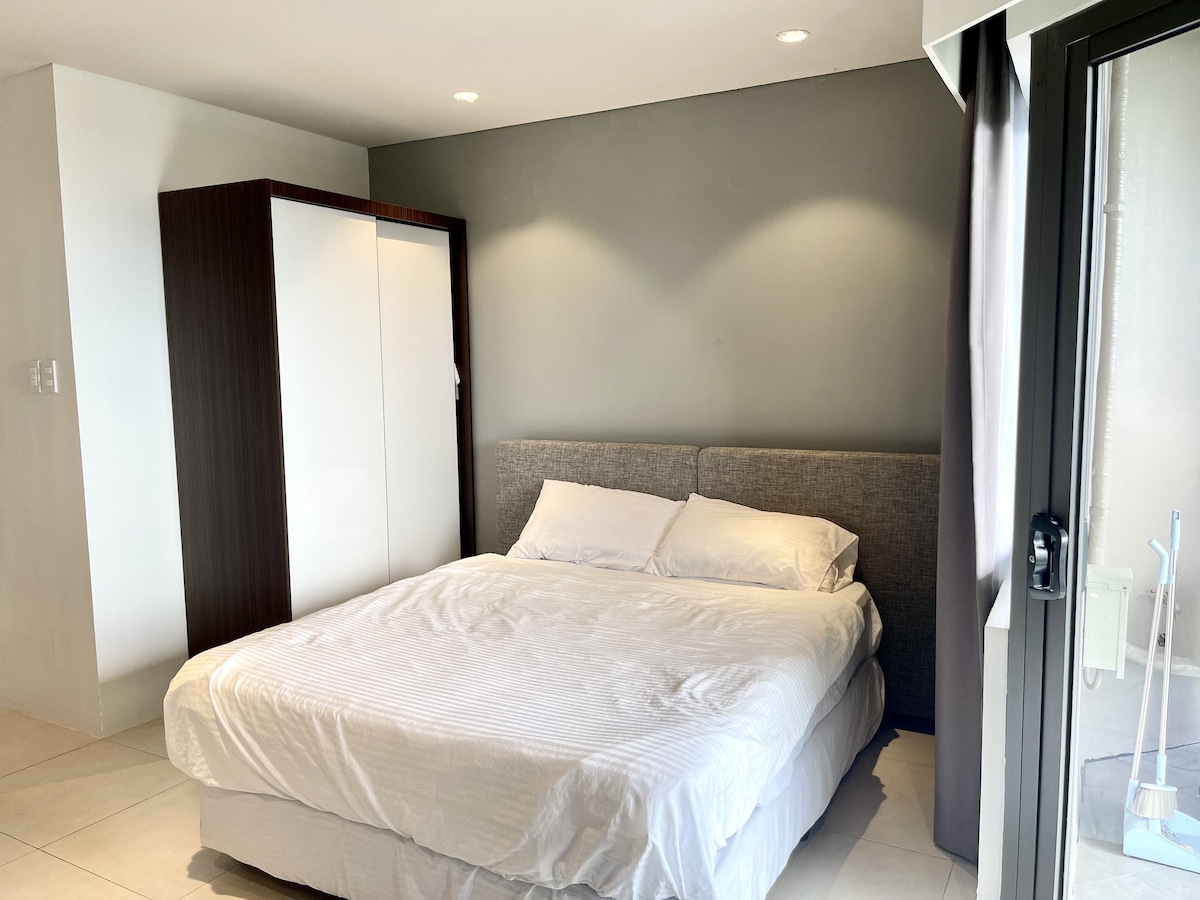 This comfortable and lovely 1BR Suite is your home away from home. Located on the high floor where you will find peace and tranquility, watching the sunrise and sunset in your own private patio. The patio has a view of the sea and lush greenery. All furnitures were meticulously picked and thoughtfully arranged to provide a homey feeling to all our guests. It is also equipped with high-speed internet, 55" smart TV in the living room, 43" in the bedroom and fully equipped kitchen.