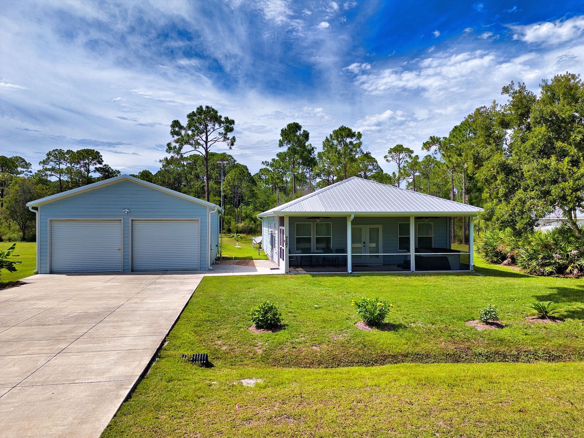 Ubicada a 2 manzanas de la bahía de Apalachicola, a 10 minutos del río Apalachicola y a 10 minutos de la isla de San Jorge, nuestra acogedora casa de campo es una nueva construcción que cuenta con todas las comodidades del hogar. Cuatro adultos pueden alojarse cómodamente con 2 camas muy cómodas y 1 baño. También contamos con una cuna plegable de tamaño perfecto para un niño. Nuestro alojamiento se encuentra en un barrio muy tranquilo ubicado en una calle sin salida y a poca distancia en coche de pesca, caza, tiendas y aventuras turísticas.