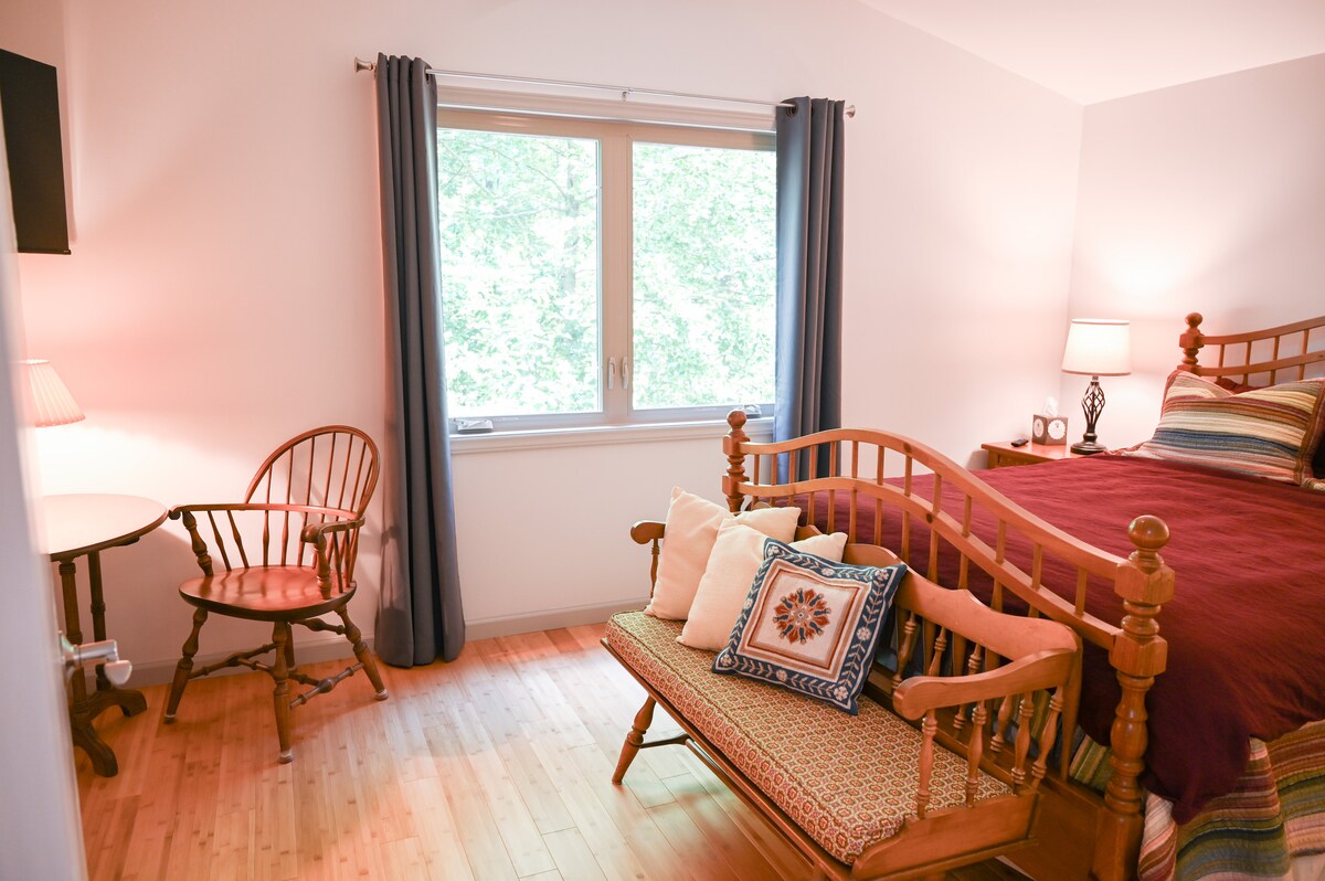 Relájate y recarga energías en una moderna casa solar pasiva diseñada por artistas escondida en el bosque a pocos minutos del centro de Durham y la Universidad de Duke. Este refugio estilo cabaña combina naturaleza, comodidad y conveniencia, ideal para escapadas de fin de semana, visitas a Duke o estancias prolongadas. En el interior encontrarás obras de arte originales, abundante luz natural y una cocina equipada profesionalmente. En el exterior, disfruta del canto de los pájaros y de los árboles maduros mientras te quedas cerca de los restaurantes, cafeterías, cervecerías y tiendas de Durham.