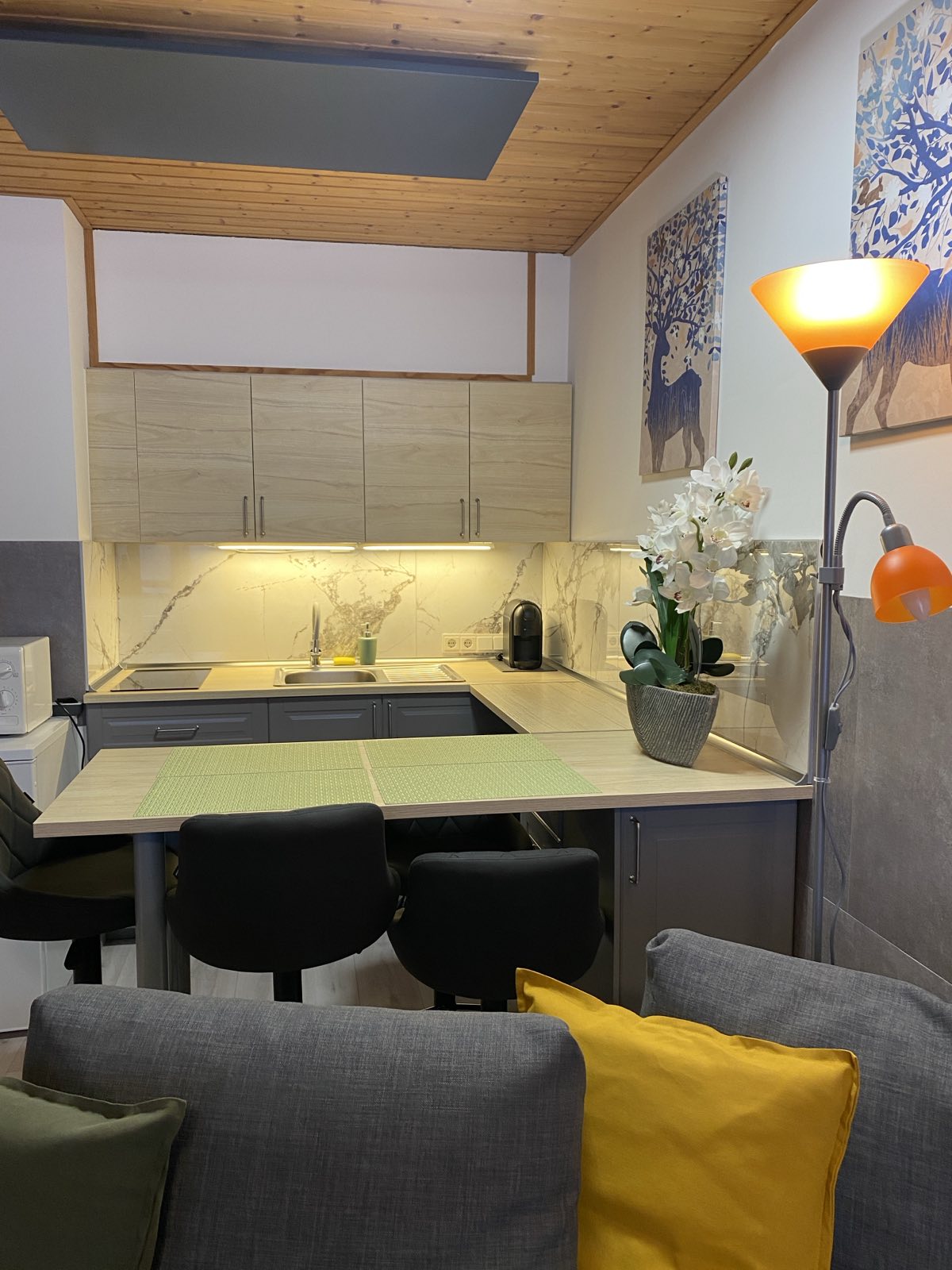 NUEVO apartamento de 1 dormitorio con 2 camas individuales, una galería para dormir con una cama doble y dos sofás cama, un baño y un inodoro separado, balcón y terraza. La cocina totalmente equipada y la fantástica vista de las montañas hacen que los días de vacaciones sean relajantes. En una ubicación tranquila, a solo 4 km del lago, es el punto de partida perfecto para caminatas y paseos en bicicleta.
