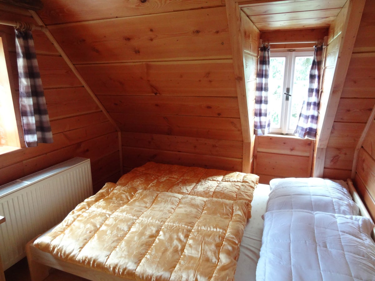 Ofrecemos una estancia en una acogedora casa de madera tradicional en paz y privacidad. La casa tiene hermosas vistas y se encuentra cerca del bosque y el Parque Nacional. La sala de estar tiene chimenea, cocina y baño totalmente equipados. Dos dormitorios están en el segundo piso. La calefacción es proporcionada por la chimenea, la electricidad es para mantener la casa caliente. Wifi ilimitado con una velocidad de aproximadamente 28 Mbps. Los techos en el primer piso son bajos, ¡ten cuidado de no golpearte la cabeza!