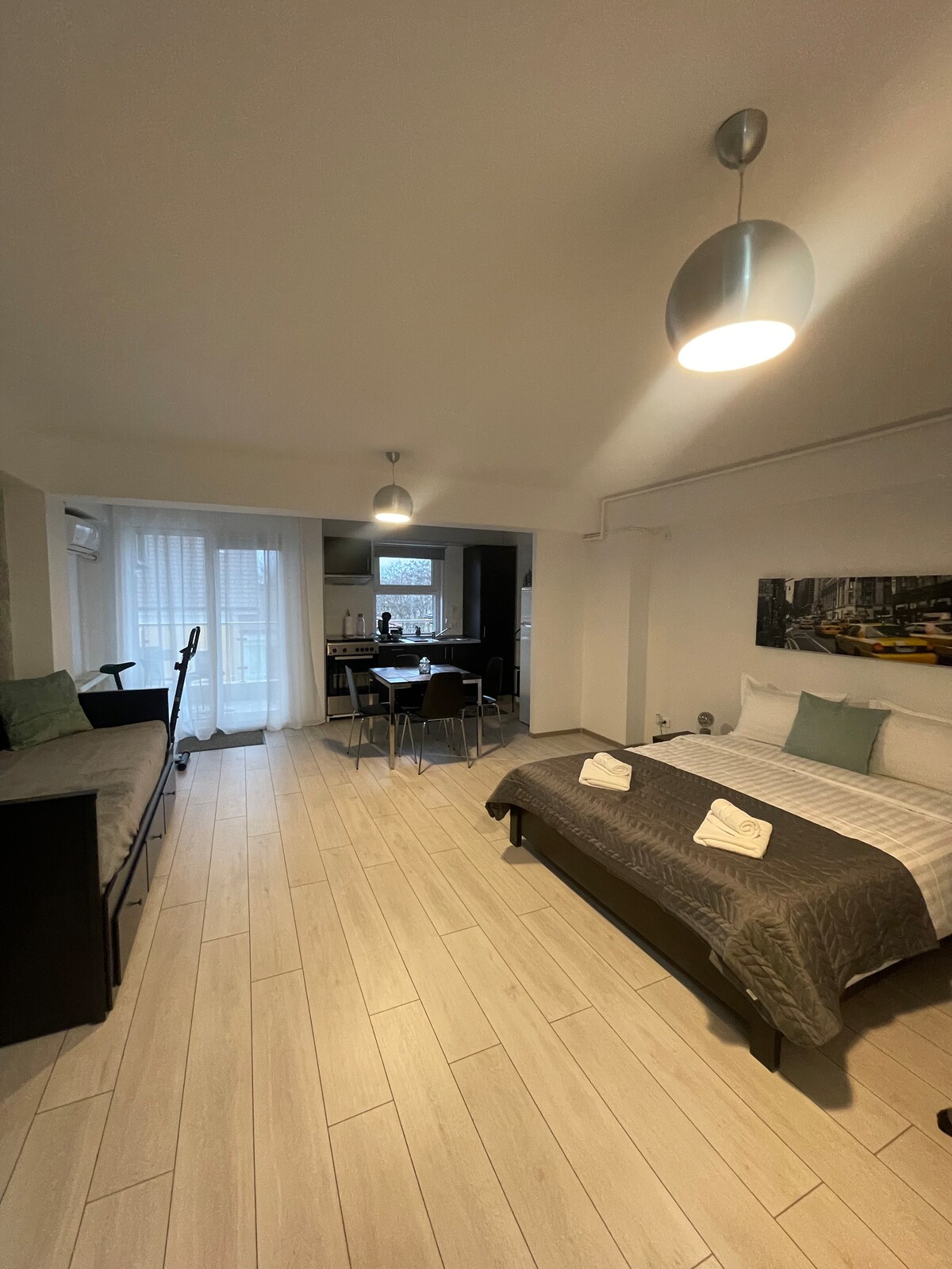 Relájate y desconecta en este alojamiento tranquilo y elegante. Uno de los alojamientos más cercanos al aeropuerto. Cerca de Therme Bucharest. Ubicación tranquila. Probablemente la mejor relación calidad-precio/ubicación/servicios si tienes un vuelo por la mañana, una escala o simplemente buscas alojamiento para unos días para relajarte. La limpieza se realiza después de cada huésped por limpiadores profesionales y todas nuestras sábanas y toallas son lavadas y planchadas por una empresa de lavandería profesional. El estudio totalmente equipado debería proporcionarte la mejor estancia.