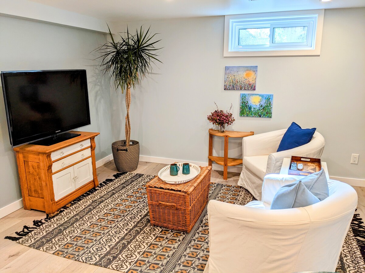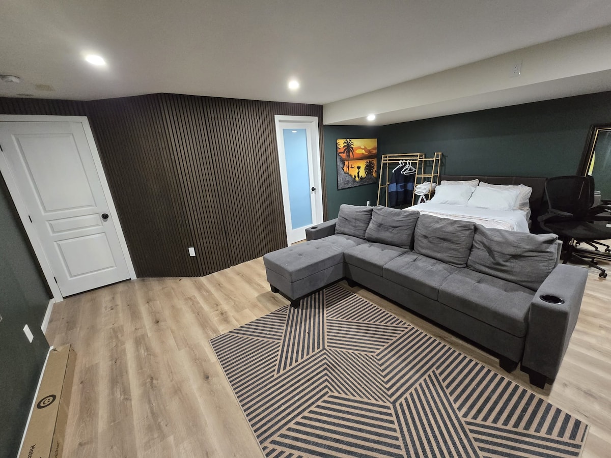 ¡Te damos la bienvenida a tu acogedora y privada suite en el sótano, el espacio perfecto para tu próxima escapada! Esta suite cuenta con una cama tamaño queen para noches de descanso, un acogedor sofá, un televisor para entretenimiento, una mesa de comedor para cuatro personas y un baño privado con lo esencial. Disfruta de la comodidad de una entrada independiente a través del garaje y estacionamiento gratuito justo afuera en la entrada. Ya sea que estés aquí por negocios, una escapada de fin de semana o explorando la zona, encontrarás comodidad y privacidad en este acogedor espacio.