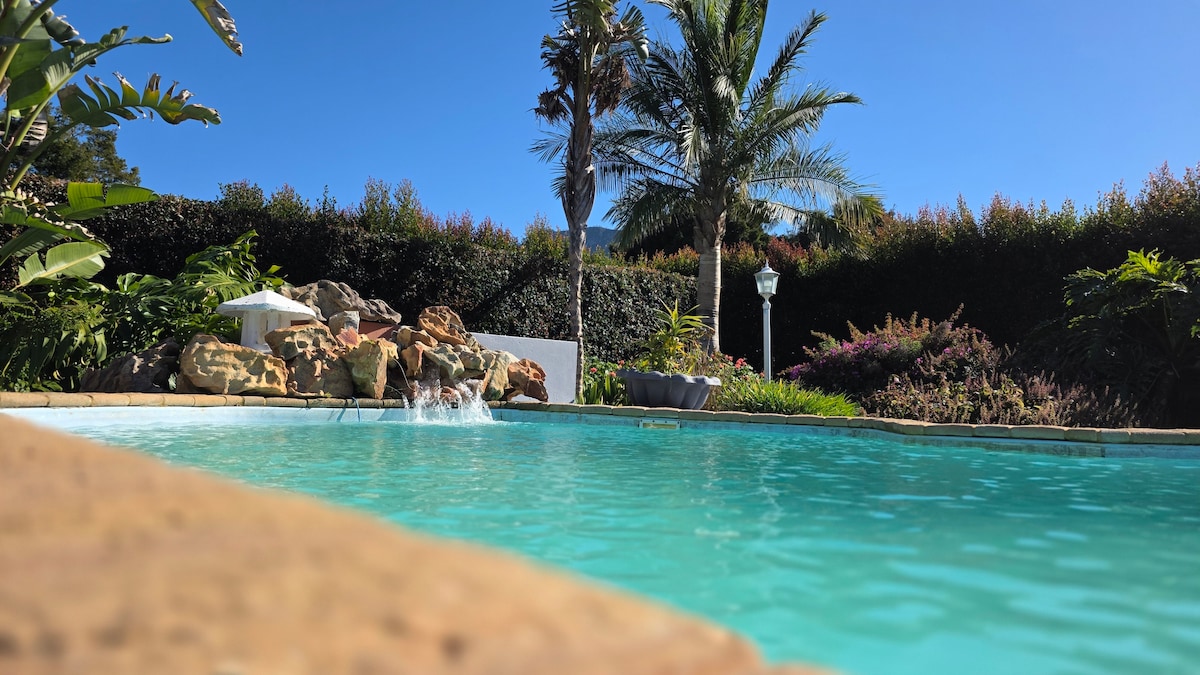 Déjate seducir por el despertar de tus sentidos. Huele el dulce aroma de las flores y fynbos, la serenata de las ranas, la vista de aves coloridas, saborea el aroma de frutas y verduras de nuestro huerto y vergel. Ideal para una pareja o una pareja con un niño (no apto para 3 adultos). Montaña, jardín, estanque (lleno de lluvia, dependiendo de la temporada). No es solo una habitación en la casa de alguien o compartir zonas comunes. Tu propio pedacito de tranquilidad. Nuestros perros deambulan libremente por la propiedad.