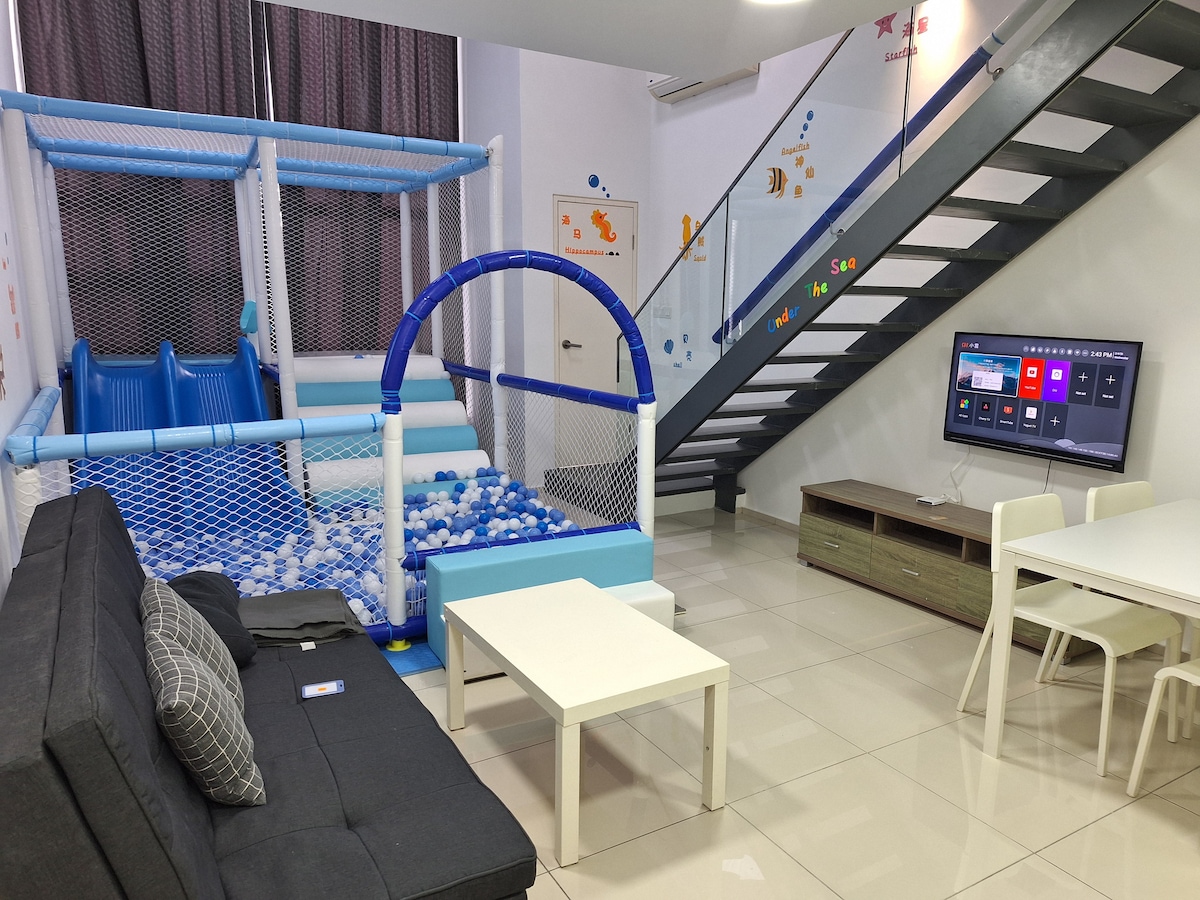 La unidad Nordic Lovely Premium Family Suite Dúplex cuenta con un diseño que se adapta perfectamente a las necesidades de familias o grupos de amigos. Amplia y bien equipada, ofrece un amplio espacio para que todos se relajen. Ya sea descansando en la acogedora sala de estar o reuniéndose alrededor de la mesa del comedor para disfrutar de una deliciosa comida. Tiene acceso directo al CENTRO COMERCIAL EKO CHERAS y está a pocos pasos de la estación de MRT. Una encantadora selección de cafeterías, bares, restaurantes y tiendas minoristas te espera a la vuelta de la esquina.