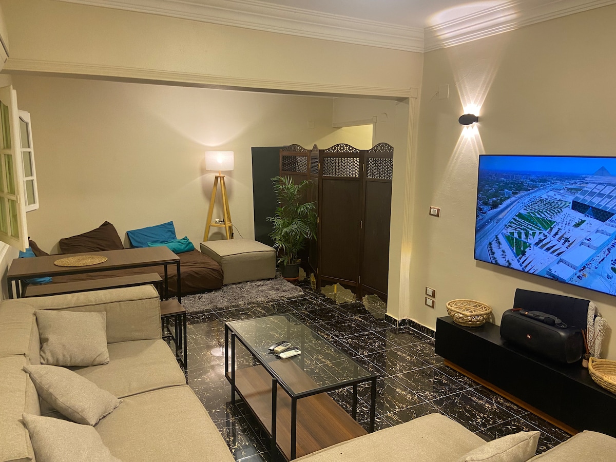 Welcome to Cairo Crown near museum NMEC 10 min the airport ✈️ 25 min 25 mins to GEM AND PYRAMIDS ,1 hour to Sokhna , 10 mins to Nasr City, 20 mins to Fifth Settlement and 12 mins to the Blue Nile 🌊. City Center Maadi (Carrefour) is just 400m away 🚶♂️. 🏠 220 sqm: 2 Bedrooms 🛌1 Dressing Room 👗, 2 Bathrooms 🛁, 2 Balconies 🌅, 1 Big Living Room 🛋️ – on the 7th floor with stunning views 2 Elevators 🚀 💪 Amenities: Gym 🏋️♂️spa 💆♀️, sauna 🔥 steam room 💨jacuzzi 🛁pool 🏊, 24/7 security 🔐