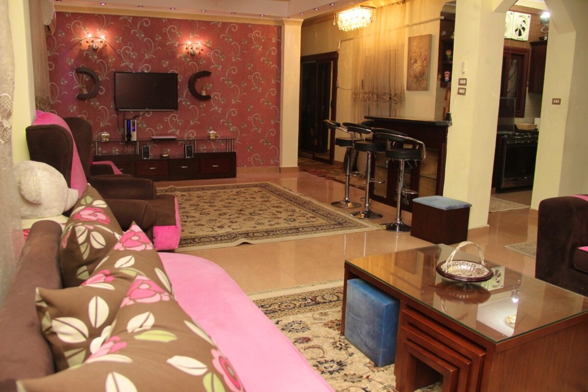 Este apartamento de 2 habitaciones ha sido rediseñado recientemente para ser cómodo. El espacio principal tiene cómodos sofás y sillones, una mesa de comedor y una cocina completamente preparada y actual, lo que lo convierte en el espacio ideal para comer y relajarse. Dos habitaciones y un baño para completarlo. He renovado el apartamento últimamente para que sea el espacio en el que necesitaría relajarme e invertir energía. Independientemente de por qué o en qué medida estés en El Cairo, ¡aprovecharás al máximo tu tiempo! El mejor apartamento para sentir placer.