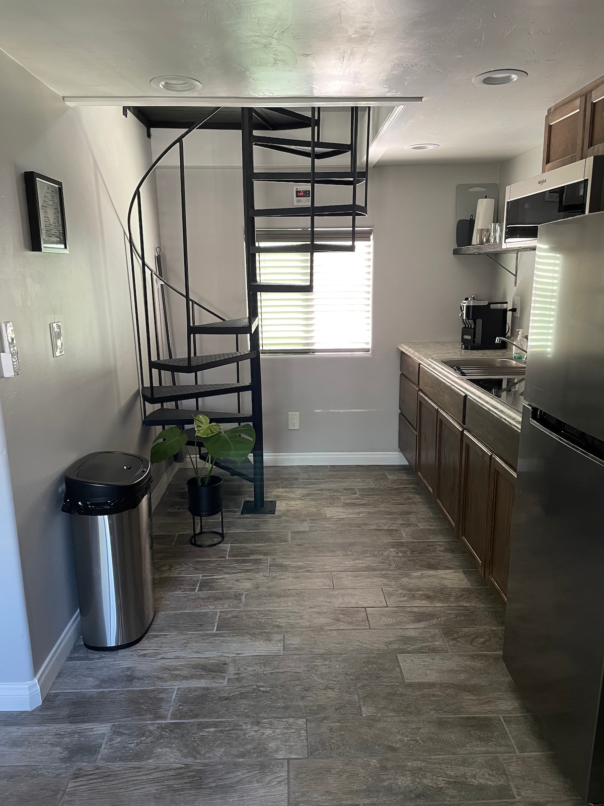 Disfruta de un dormitorio y baño recientemente remodelados con entrada independiente. El espacio está completamente separado del resto de nuestra casa, ofreciendo paz, tranquilidad y total privacidad. En el interior, encontrarás una nueva y cómoda cama tamaño queen, además de comodidades modernas que incluyen un televisor inteligente, wifi, mininevera, microondas y Keurig.