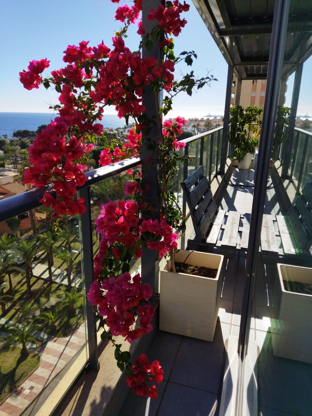 Estudio muy luminoso con impresionantes vistas, a 250 metros de la playa. Con vistas al mar y a la montaña. Balcón espectacular para el verano, se ve el amanecer y por las tardes da la sombra. Ideal para comer y cenar. Cuenta con todas las comodidades, cocina completa (con microondas, tostadora, placa de inducción, etc.), aire acondicionado con bomba de calor, lavadora, nevera, tv, mesa y sillas tanto dentro del estudio como en la terraza.