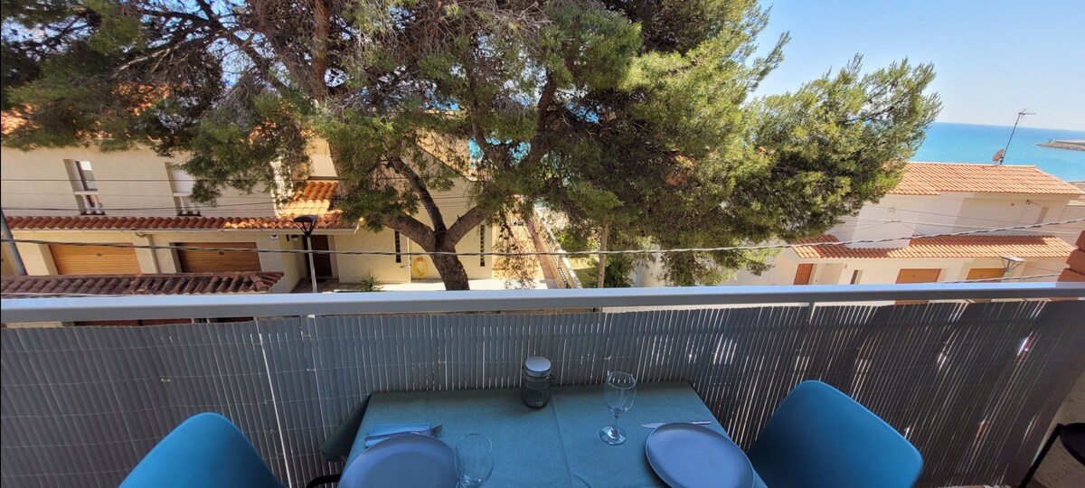 "Punta Xata", a primera línea de mar y con vistas únicas. La terraza más grande es ideal para tomar el sol, disfrutar de la puesta del sol y cenar. La pequeña es perfecta para desayunar y ver el amanecer. Dormitorio principal muy romántico, con bañera redonda y vistas al mar. Interior cuidado y muy bien equipado. Zona comunitaria tranquila, con piscina. Ideal para parejas y familias. Acceso a playas a 2 minutos a pie y a 15 del Paseo Marítimo de Salou. Wifi y parking privado.