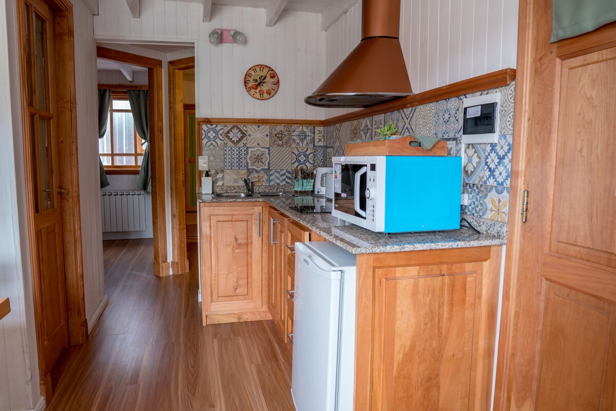 El apartamento es independiente y se encuentran completamente equipado para disfrutar de una estadía cómoda y relajada. A 600 metros de la Terminal de Buses y las cabeceras de sendero del Parque Nacional. Las instalaciones disponen de 1 cama matrimonial y 3 camas simples, ideal para 5 personas. Calefacción, baño privado, cocina totalmente equipada.