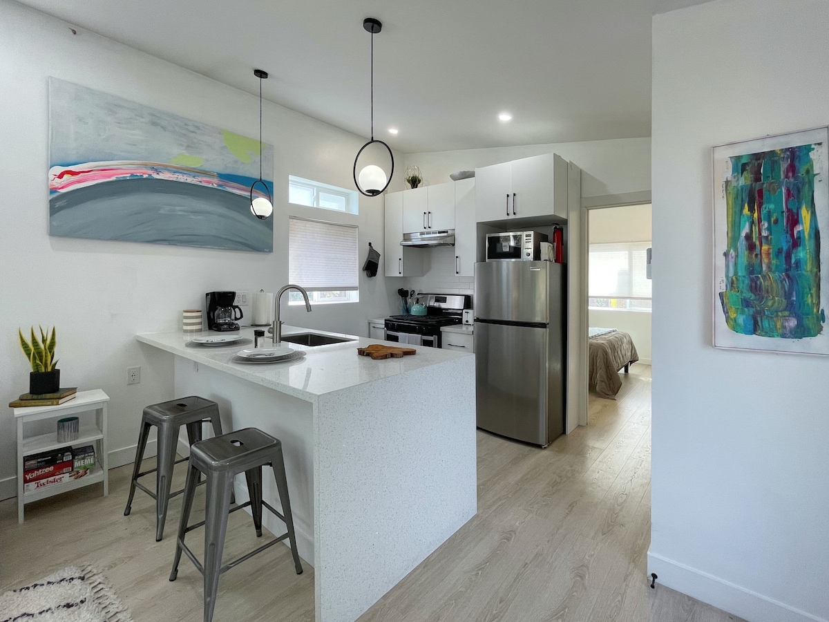 Bienvenido a nuestra nueva suite de invitados con entrada independiente sin llave, cocina totalmente equipada, baño personal y lavadora-secadora. Disfruta de una estancia cómoda con una amplia gama de servicios, como toques de diseño acogedores, bicicletas para montar, control de temperatura con aire acondicionado y una plaza de aparcamiento en las instalaciones. Ubicado en un barrio seguro y pintoresco, experimentarás paz y belleza por todas partes. Da paseos tranquilos por los parques cercanos y sumérgete en el ambiente tranquilo. ¡Reserva ahora para disfrutar de una estancia encantadora!