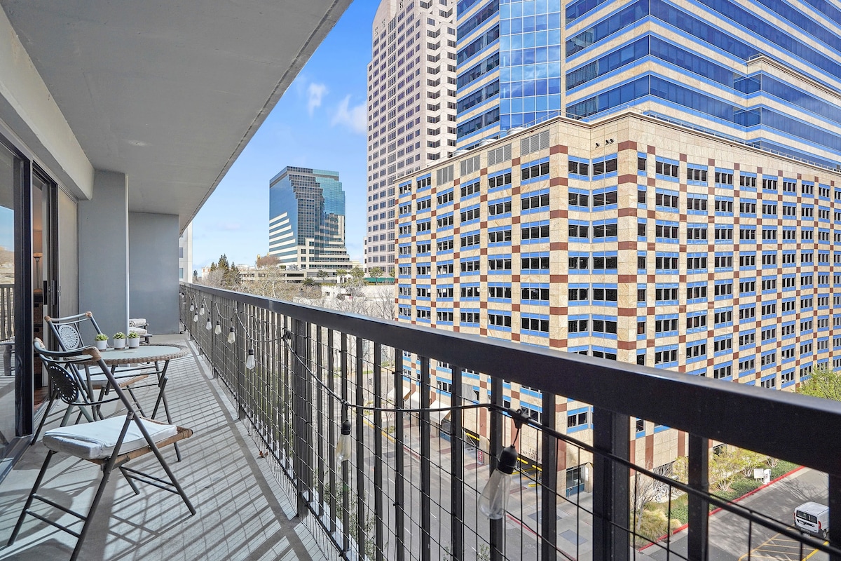 Espacio amueblado de lujo con cama tamaño king en el centro de Sacramento.
