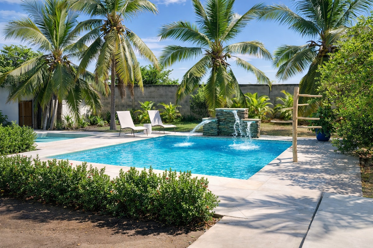 Una moderna casa, a tan solo 4 minutos caminando del mar. Ideal para familias y grupos que buscan comodidad, privacidad y un ambiente relajante cerca de la playa. La propiedad cuenta con 2 niveles. Parqueo privado para 2 vehiculos, 3 habitaciones y 3 baños completos, sala, comedor, cocina totalmente equipada perfectos para alojar a varios huéspedes. Relájate en la piscina privada con fuente, perfecta para disfrutar durante el día o en una noche tranquila. Ideal para estancias cortas o largas.