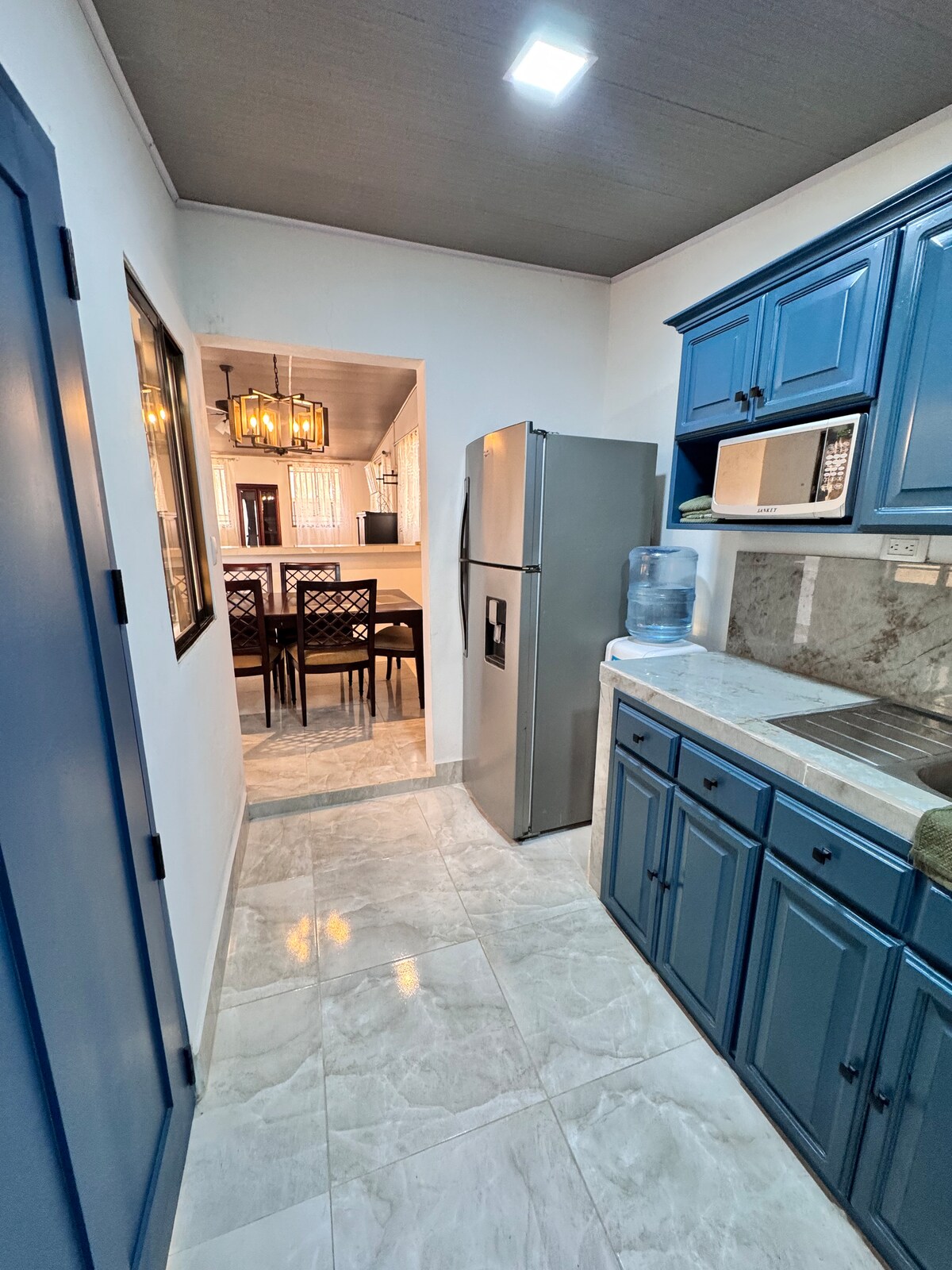 Modern, centrally located house in Estelí, just three blocks from the stadium. Features two bedrooms (queen bed & two singles), two bathrooms, a fully equipped kitchen, formal dining room, TV area, and TVs in every room. Includes fans, a lovely patio, and secure garage. Perfect for families or business travelers seeking comfort and convenience. Enjoy easy access to markets, restaurants, and city attractions. Your ideal home away from home!