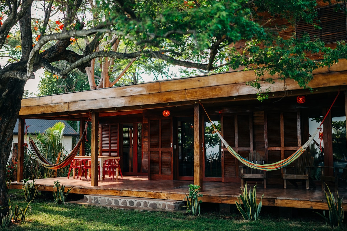 Disfruta de toda la casa solo para ti y tu familia o amigos. Relájate en este tranquilo alojamiento con aire acondicionado en las salas de estar y en el dormitorio... muy rápido...estacionamiento dentro de la propiedad o en el lateral de la casa. A solo cinco minutos, puedes ir a Enyo, la hermosa puesta de sol en el muelle de Puerto El Triunfo.