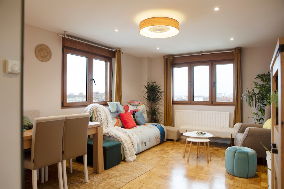 VUT 680. AS Precioso apartamento recién reformado en el centro de Gijón, con plaza de garaje cercana incluida en el precio. Increíbles vistas de la ciudad. En la zona de las mejores sidrerías y restaurantes y a escasos metros de la zona comercial. Además, estamos a pocos minutos de la Playa de San Lorenzo y Poniente. Es ideal para parejas y para familias con niños. Tenemos posibilidad de cuna y todo lo que necesites para ellos. Wifi