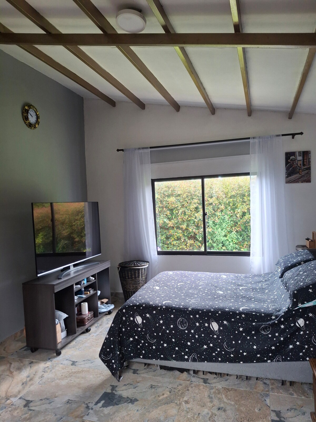 Hermosa habitación a tan solo 5 minutos caminando del parque, acá tendrás un espacio perfecto para descansar y salir a conocer el eje cafetero. Tienes espacios para trabajar si lo necesitas, tenemos wifi y una vista hermosa, además de esto puedes salir a conocer el pueblo y sus alrededores en nuestra bicicleta doble, es una gran aventura. La hora de llegada y de salida podrá ser flexible según las reservas y tu necesidad.