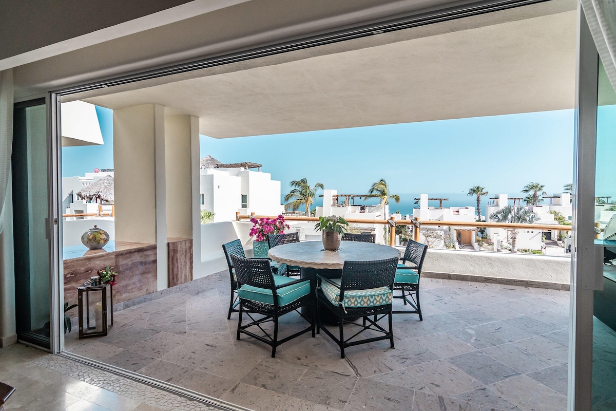 Disfruta del encanto de Cabo en nuestra villa privada Mexican Chic. A pocos pasos del Océano Pacífico con impresionantes vistas al Océano Pacífico + a 100 yardas de Pedregal Beach. Ubicada en la comunidad segura y cerrada por la guardia de Pedregal, nuestra propiedad promete tranquilidad y conveniencia. Disfruta de un fácil acceso a los vibrantes restaurantes, tiendas y entretenimiento de Cabo San Lucas. La Villa ofrece comodidad de lujo, comodidades modernas y la base perfecta para explorar o simplemente tomar el sol y el paisaje. Bienvenidos.