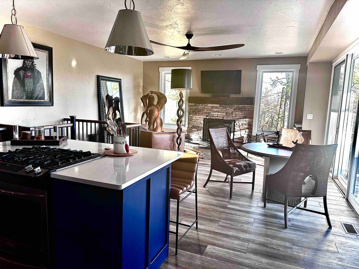 ¡Disfruta de unas vistas impresionantes de la puesta de sol detrás de Pikes Peak a través de ventanas del piso al techo! Toma tu café de la mañana en el patio privado mientras una familia de ciervos pasea. Entra en el Jardín de los dioses y luego relájate en el jacuzzi bajo las estrellas. Prepara una comida deliciosa con todo lo que necesitas ya provisto para ti; utensilios de cocina, aceites y especias, y disfrútala con vistas a la montaña como telón de fondo. ¡Descubre tu refugio ideal en Colorado Springs en mi casa de huéspedes histórica renovada con cariño!