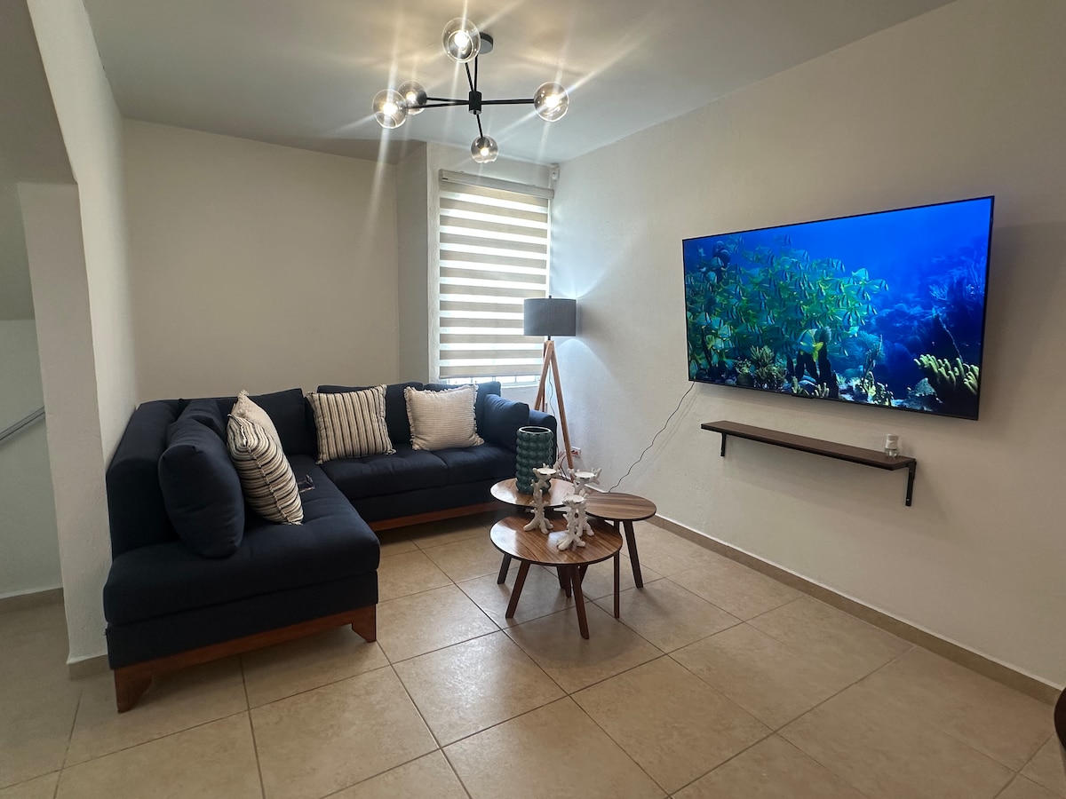 departamento completo, amueblado, privado, de fácil acceso, en zona cercana a todo, segura y tranquila. a una cuadra de distancia de supermercado Soriana. a una cuadra de vía rápida. cuenta con una habitación de 2 camas de tamaño matrimonial. Departamento ideal y muy cómodo para máximo 4 personas incluyendo niños o bebés. TV HD, wifi, plancha, cocina con todos los utensilios básicos: cafetera, horno de microondas, refrigerador, estufa, detector de humo, sala con sofá cama, patio para carne asada. playas a 5 minutos de distancia y 10 minutos zona de bares y centro. ideal para un fin de semana de descanso o para conocer la ciudad.