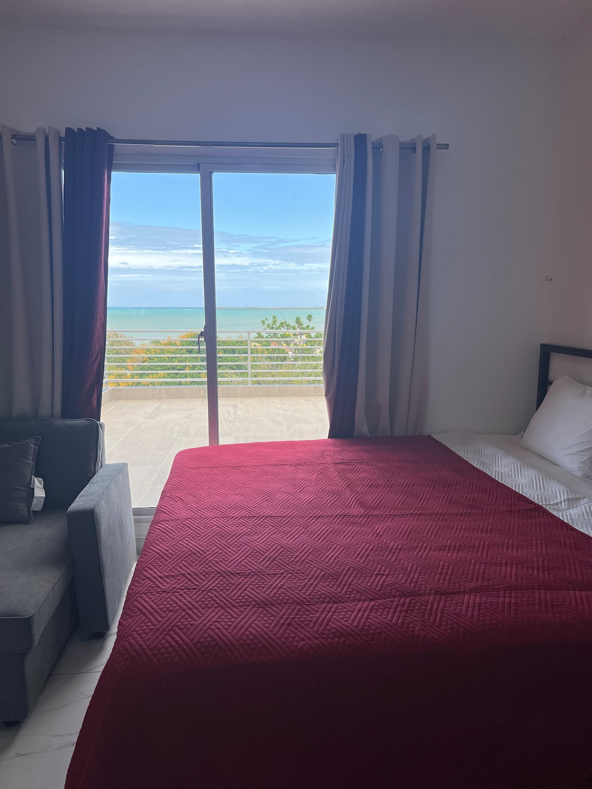 Apartamento de dos habitaciones recién construido con vista al mar desde su encantador balcón trasero. A solo unos minutos a pie del malecón de Miches, este apartamento es perfecto para quienes desean disfrutar de este hermoso pueblo costero. A cinco minutos de Playa Arriba y a 25 de Playa Esmeralda. Perfecto para una escapada romántica o un fin de semana divertido con los niños. Incluye cocina completa, wifi, Claro TV y lavadora y secadora.