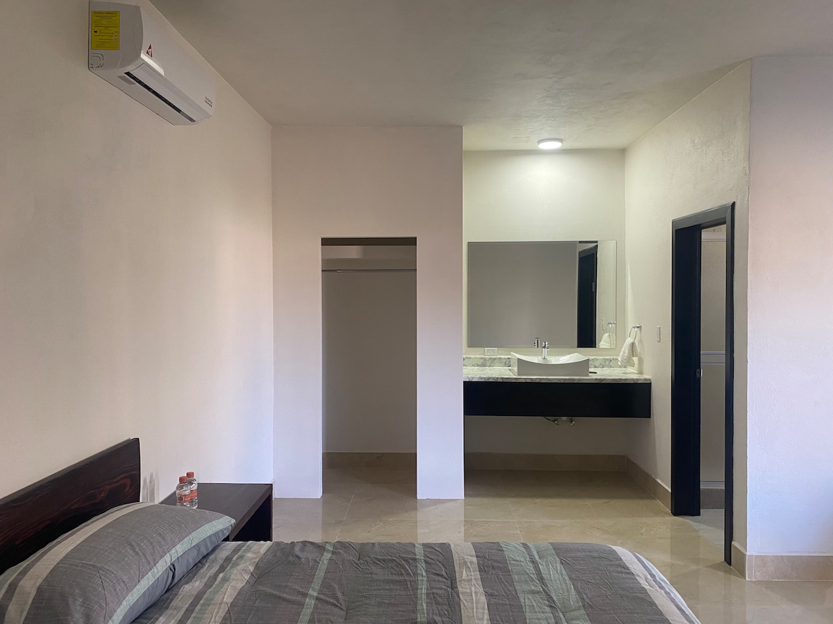Un lugar comodo y limpio, con aire acondicionado, seguro, boiler, estacionamiento compartido dentro de la propiedad con cerco con puertas con candado, ideal para descansar si estas de paso o de vacaciones, cercano a la carretera principal, con una cocina media, sin estufa; pero si te quedaras varios días, podemos proveerte 1 parrilla de gas con 1 tanquesito (tu compras el resto) debes pedirla, puedes acampar en el patio también si traes casita de camping y asar y hacer fogata afuera.