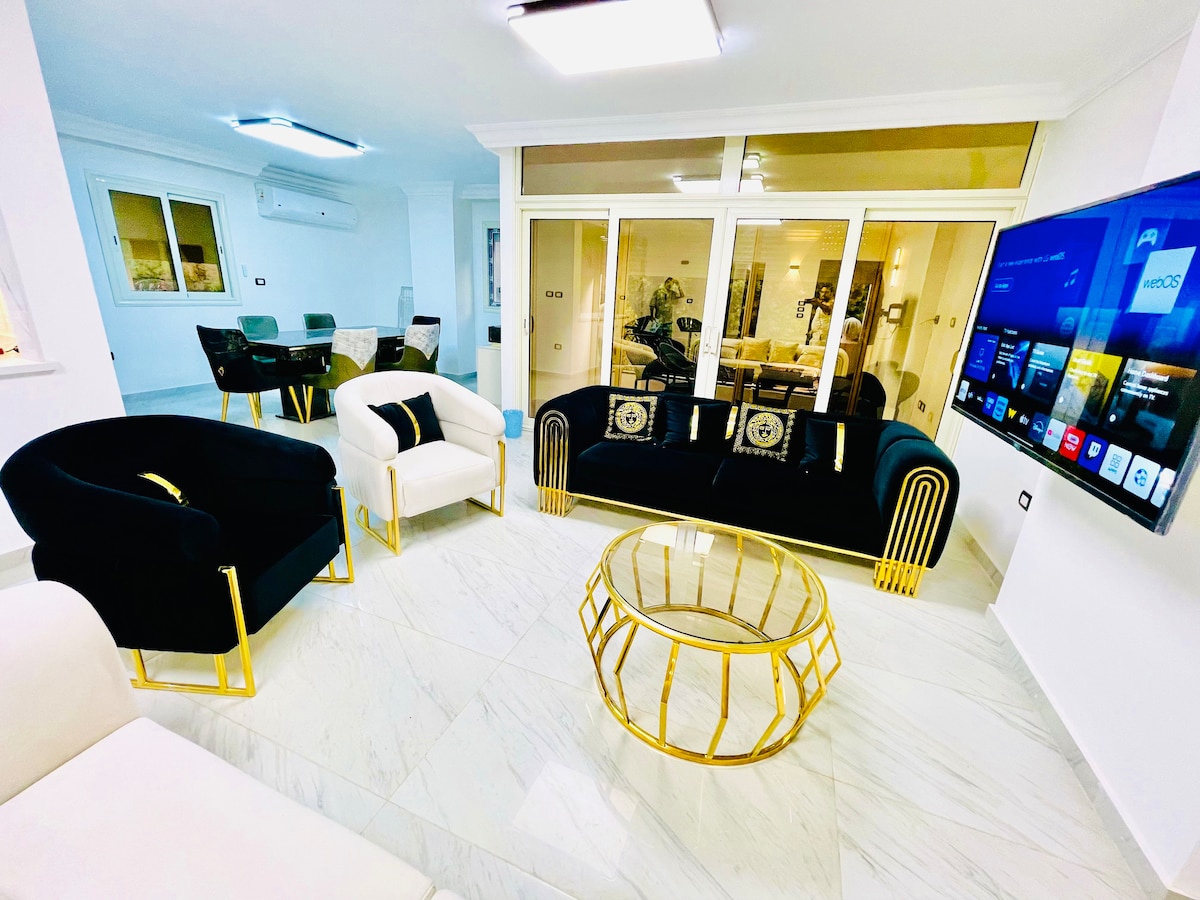 🏡 Elegante apartamento en el centro de la ciudad, ¡a solo unos pasos del metro más nuevo de El Cairo! Lo que te encantará: ✔ Ubicación privilegiada: a solo un minuto del aeropuerto, cafés y centros comerciales. ✔ Acogedor y bien diseñado: dormitorio con televisor inteligente y wifi rápido. Cama ✔ cómoda: colchón de alta calidad y sábanas de lujo para un sueño reparador. Extras ✔ atentos: ¡toallas limpias, artículos de aseo personal y una canasta de aperitivos de bienvenida! Nota: Ten en cuenta que no se permiten grupos mixtos ni parejas en el departamento.
