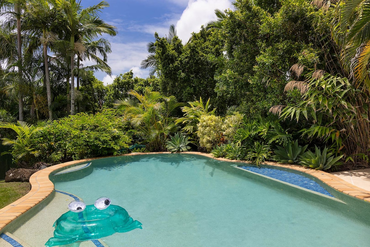 Estudio de playa con aire acondicionado de estilo costero, a 100 metros de Kingscliff Beach, parques/pistas para bicicletas. Ubicado debajo de uno de nuestros hermosos árboles Frangipani en Kingscliff Lane, nuestro estudio está alejado de la casa principal, tiene una entrada independiente y goza de una ubicación tranquila y privada. Está impecablemente limpio y bellamente amueblado con wifi, TV inteligente, camas cómodas y ropa de cama de la más alta calidad. Los huéspedes pueden utilizar la zona de comedor/barbacoa al aire libre, la mesa de ping pong y varias zonas de relajación al aire libre.