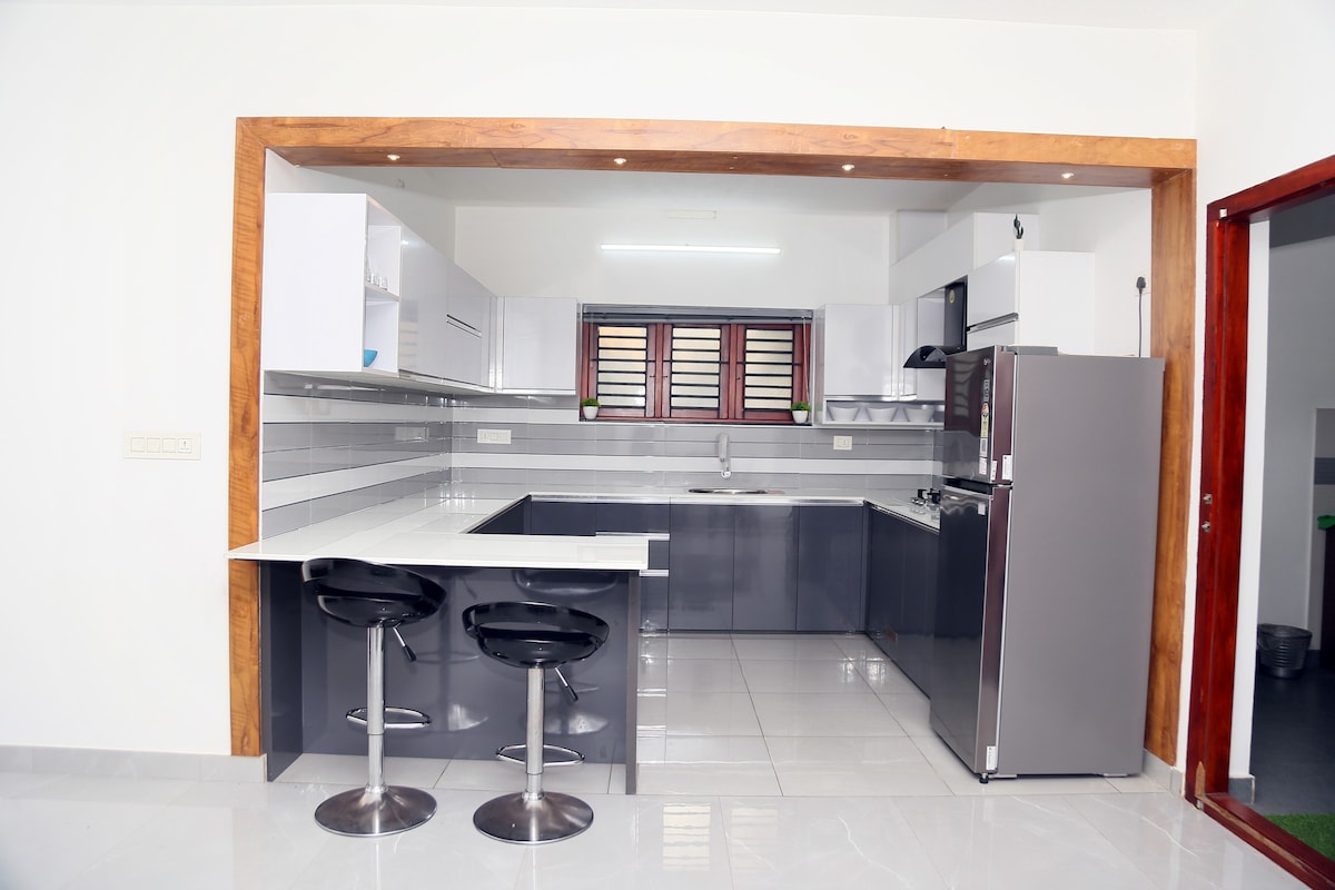 Experience a Home away from Home at our newly built 4-bedroom villa in Kadachira, Kannur. Perfect for families and groups, it offers a comfortable living spaces, a fully equipped kitchen, and a serene outdoor area. Just a few kilometers from major Beaches and Temples, enjoy the convenience of exploring Kannur while relaxing in a cozy, well-appointed retreat with everything you need for a delightful stay.
