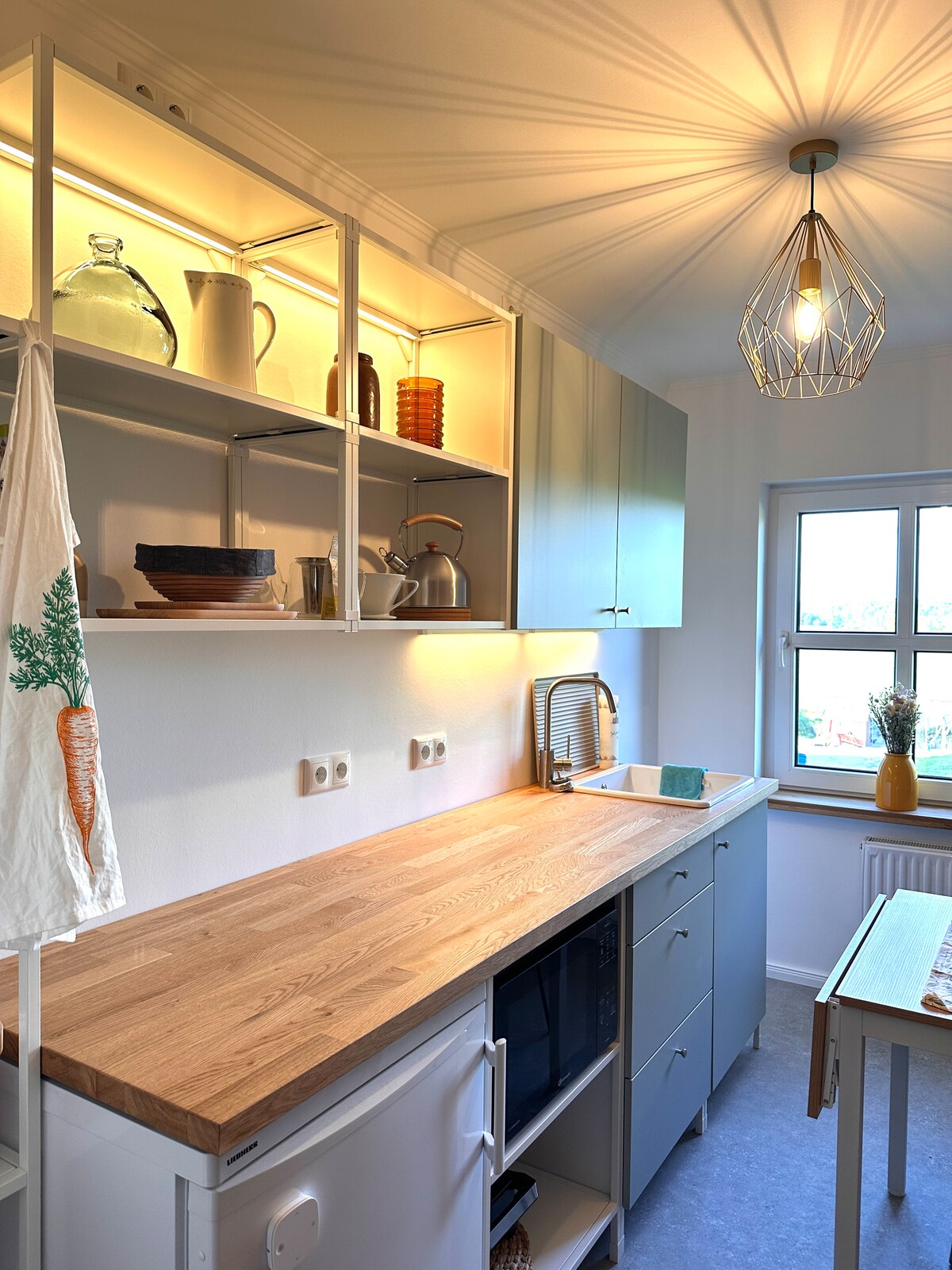 Lehne dich zurück und entspanne – in dieser ruhigen, stilvollen Unterkunft kannst du es dir mal richtig gemütlich machen und abschalten vom stressigen Alltag… Die Wohnung verfügt über eine voll ausgestattete Küche, einem Duschbad, bietet Platz für bis zu 4 Personen. Wichtig zu wissen ist, dass das Doppelbett im Spitzboden über die auf dem Bild ersichtliche Treppe zu erreichen ist. Alle Dachfenster sind mit Solarrolläden ausgestattet, können dementsprechend Wärme abhalten und komplett verdunkeln.